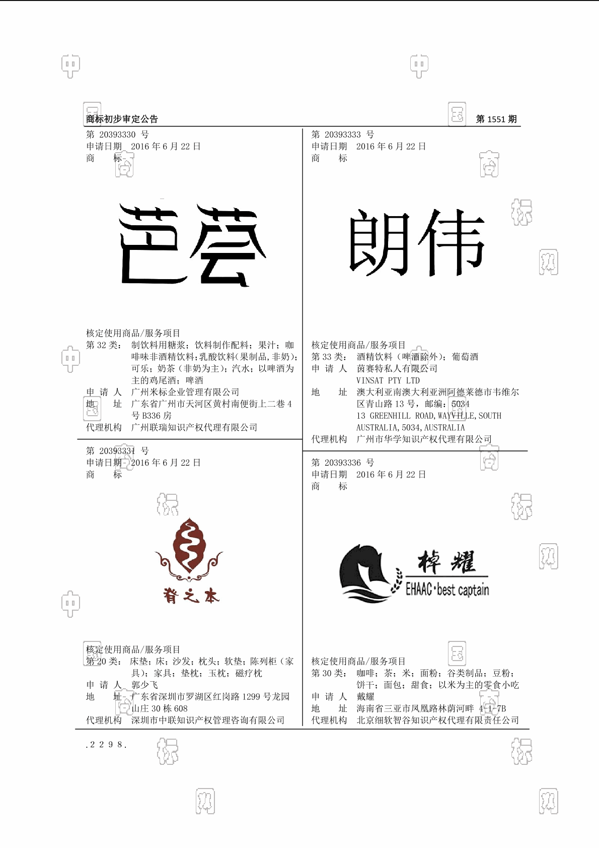 有效期限:2027-08-13 组合类型:中文注册号:20393330
