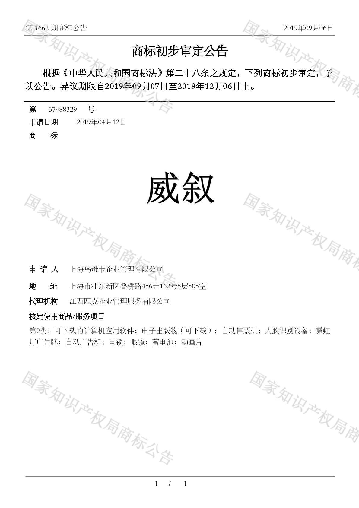 有效期限:2029-12-06 组合类型:中文注册号:37488329