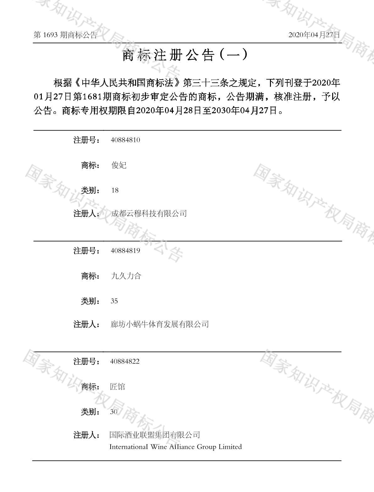 注册公告期号:1693