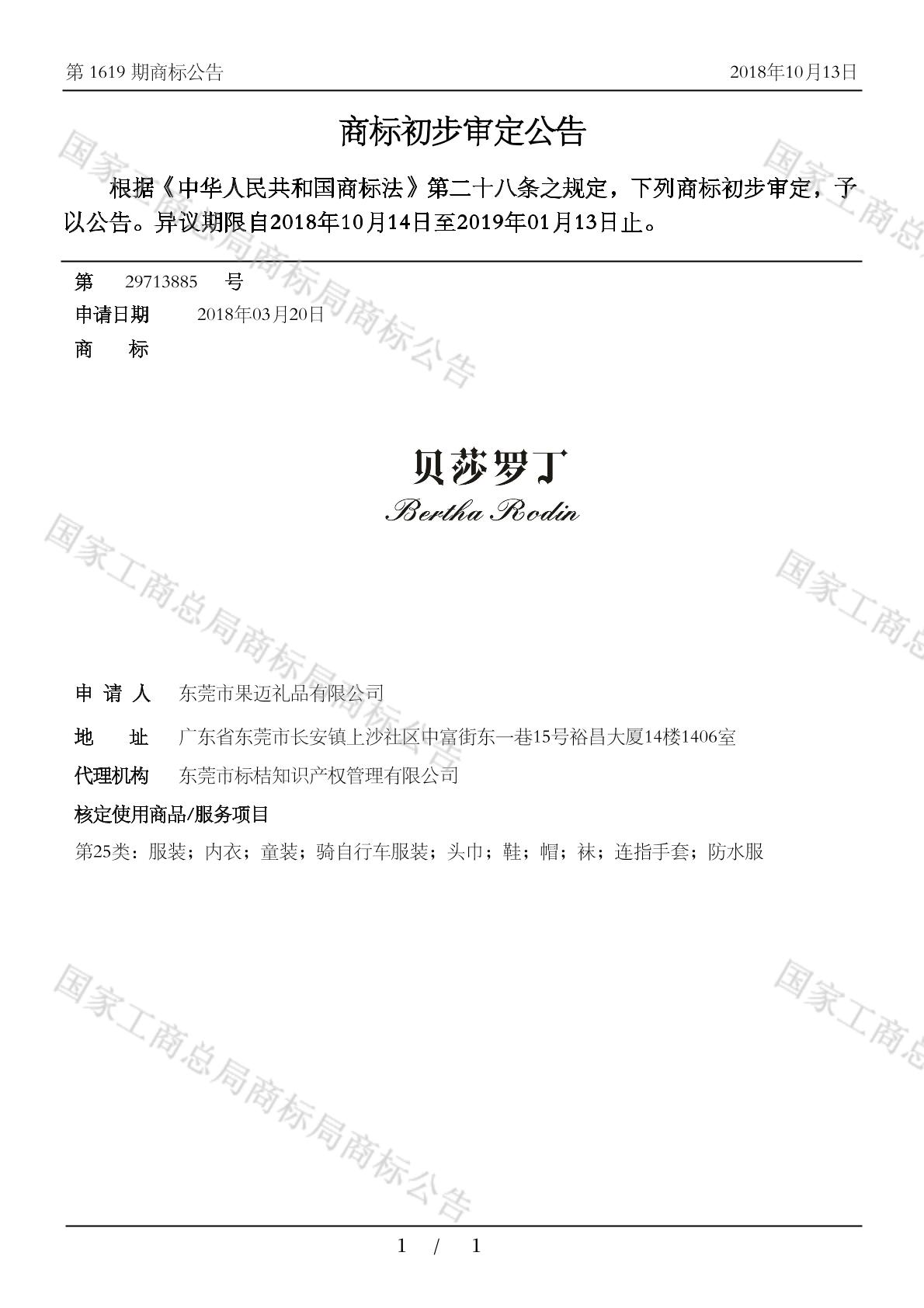 您当前位置:首页商标转让25类商标贝莎罗丁 BERTHA RODIN