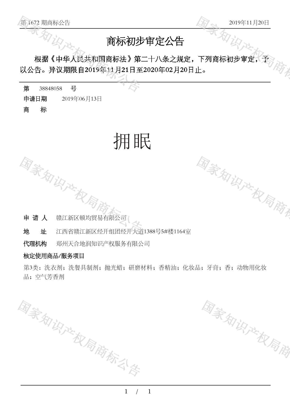 有效期限:2030-02-20 组合类型:中文注册号:38848058