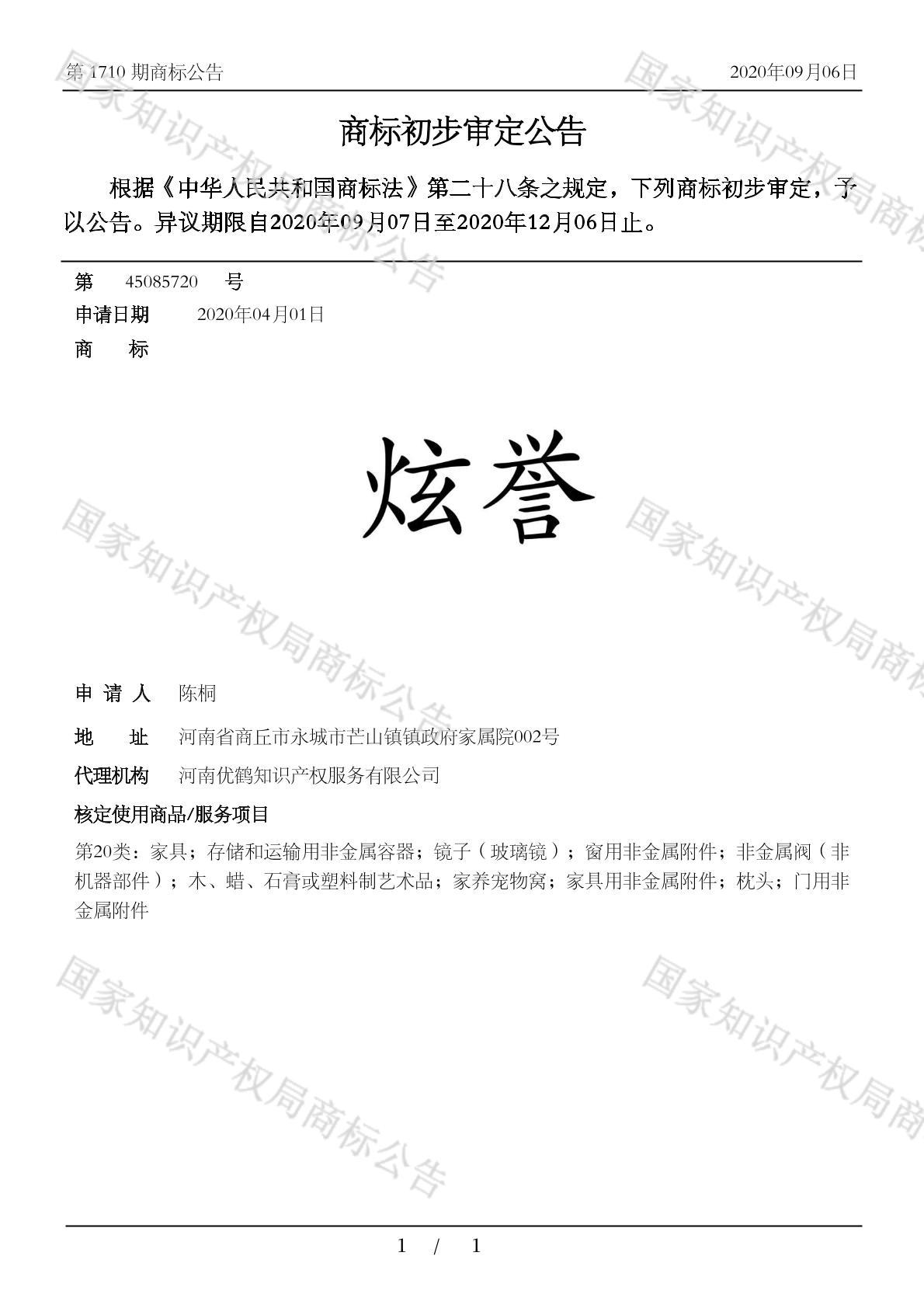 您当前位置:首页商标转让20类商标炫誉