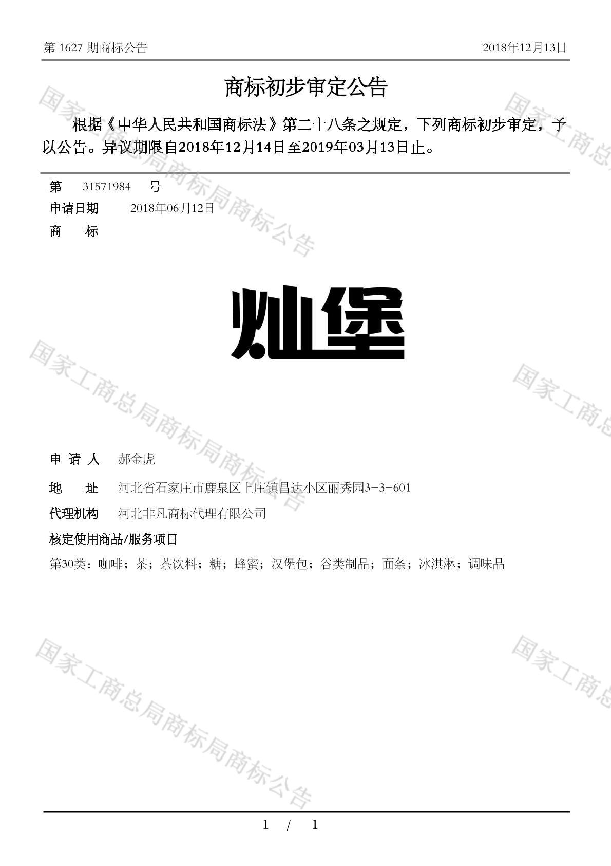 初审公告日期:2018-12-13