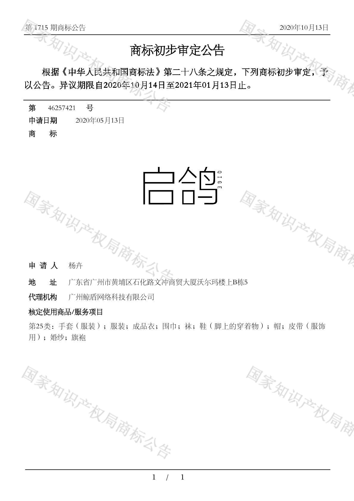 注册公告期号:1727