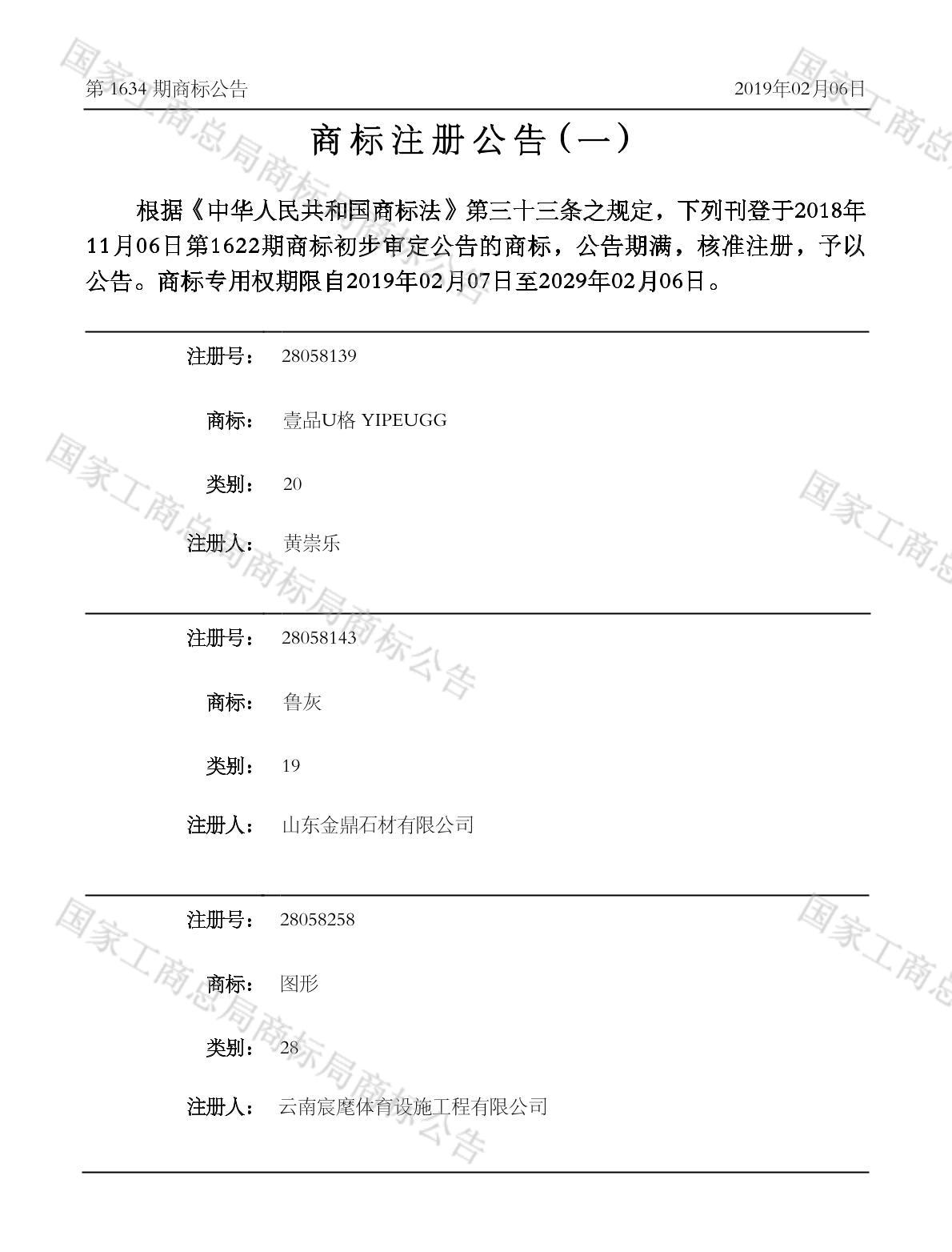 注册公告期号:1634