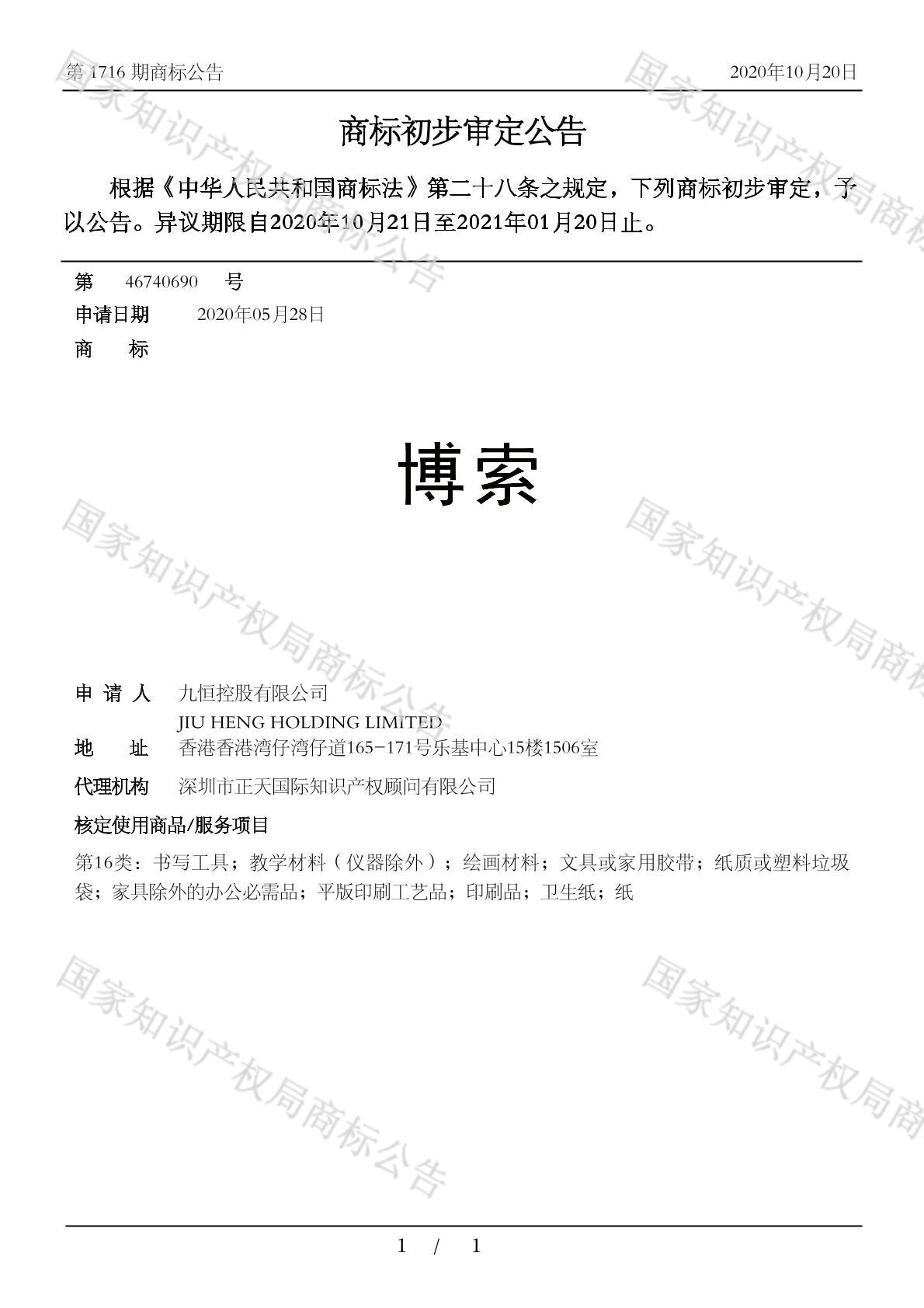 有效期限:2031-01-20 组合类型:中文注册号:46740690