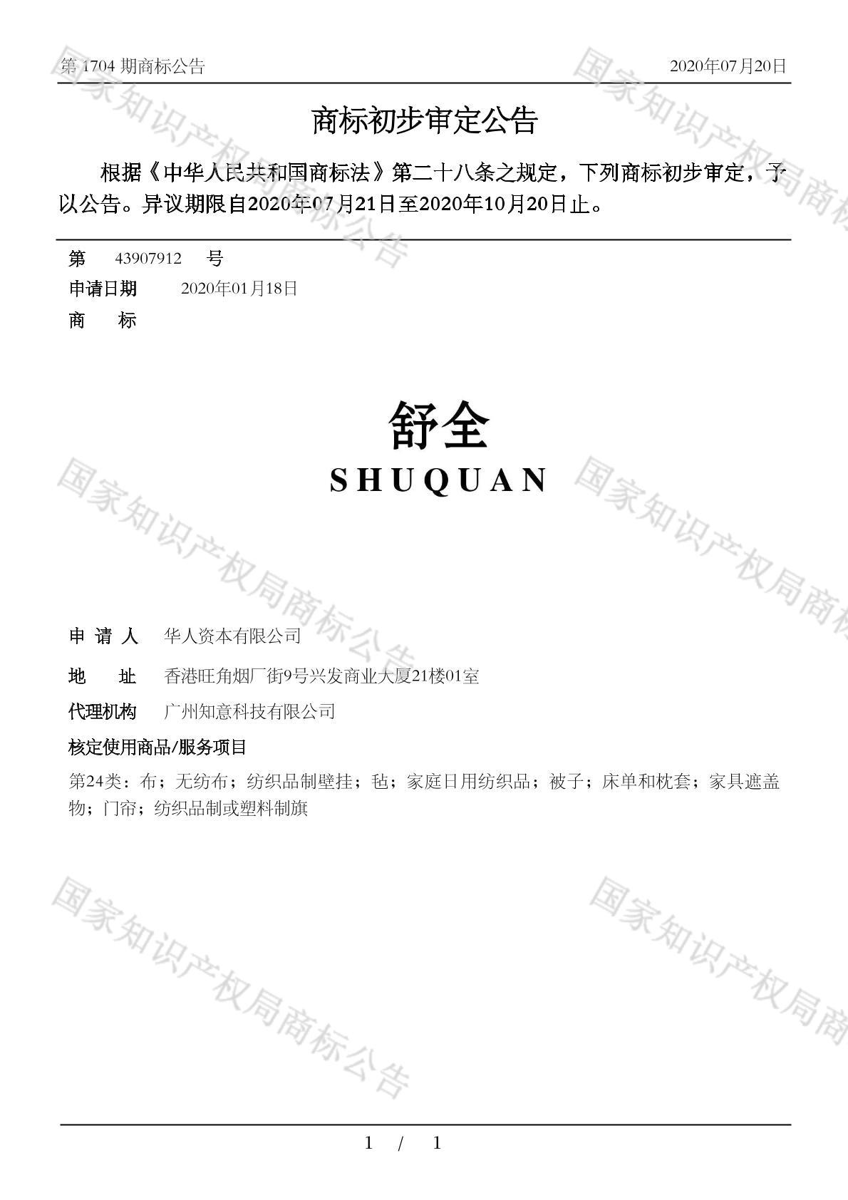 初审公告日期:2020-07-20
