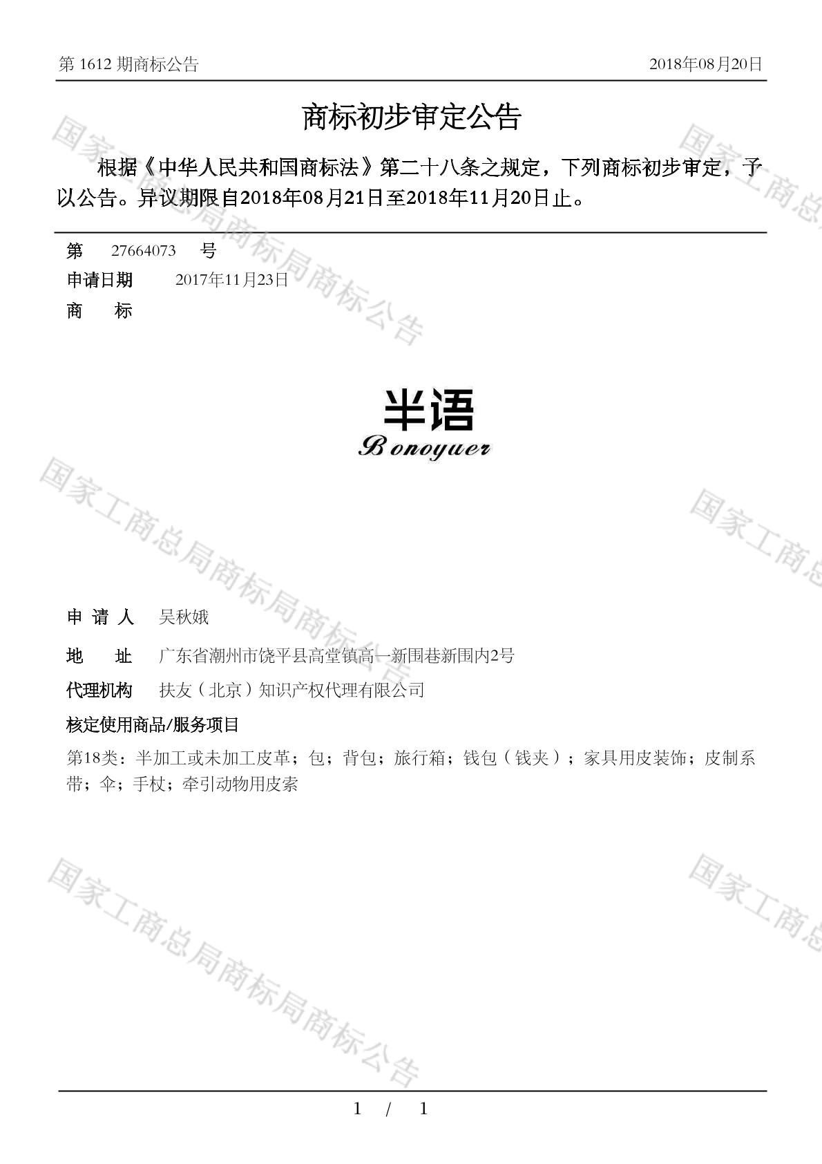 您当前位置:首页商标转让18类商标半语 BONOYUER
