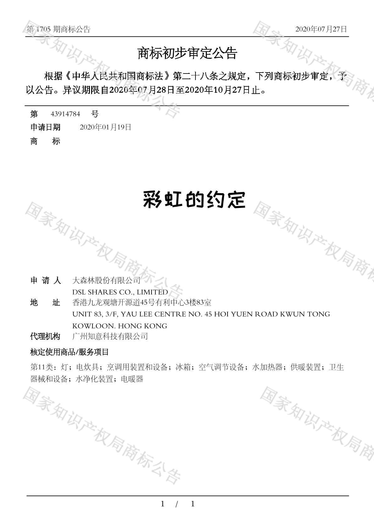 有效期限:2030-10-27 组合类型:中文注册号:43914784