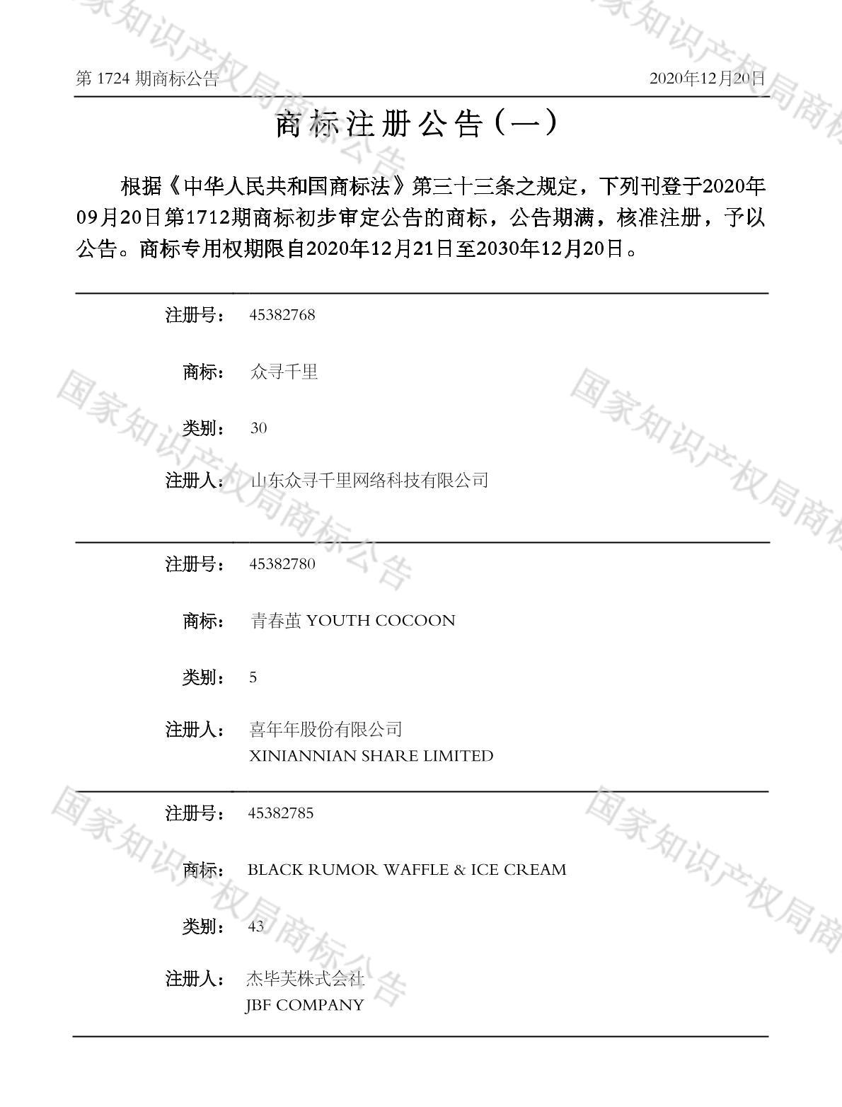 注册公告期号:1724