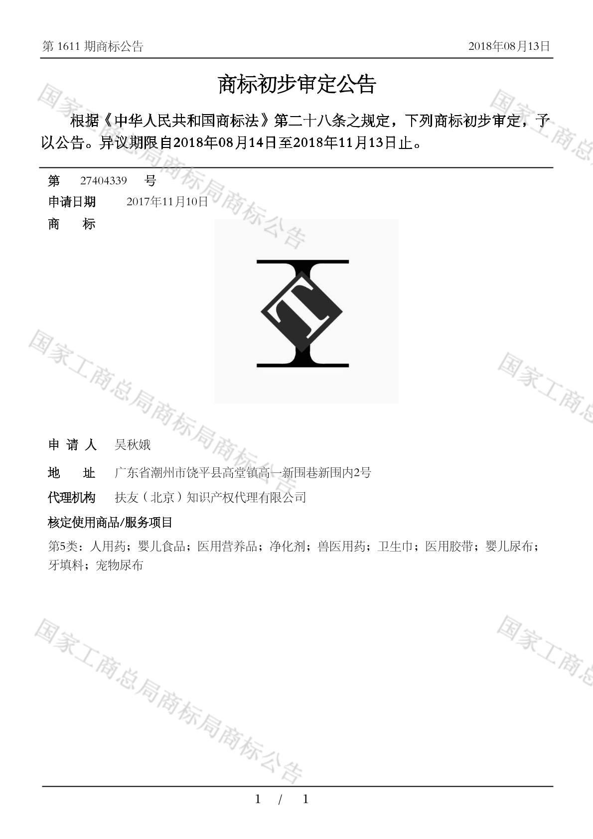 有效期限:2028-11-13 组合类型:中文注册号:27404339
