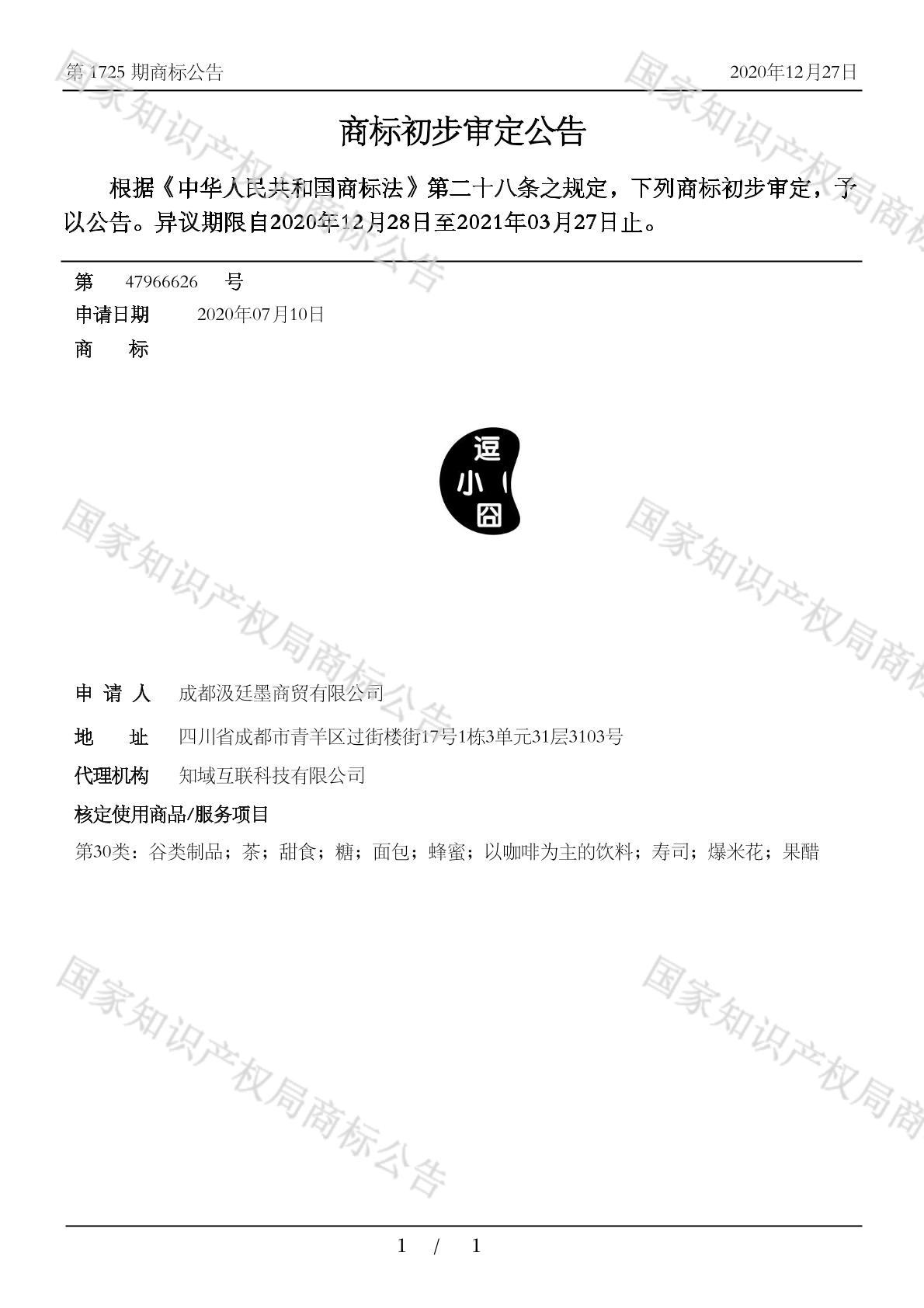 有效期限:2031-03-27 组合类型:中文注册号:47966626
