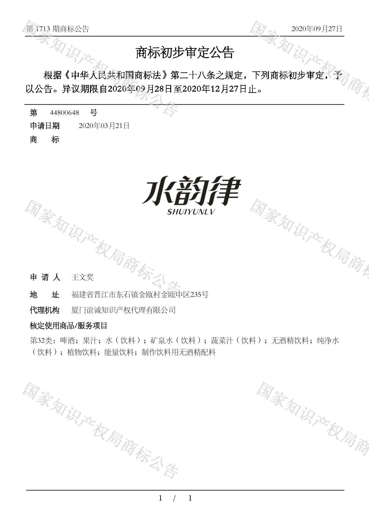 初审公告期号:1713