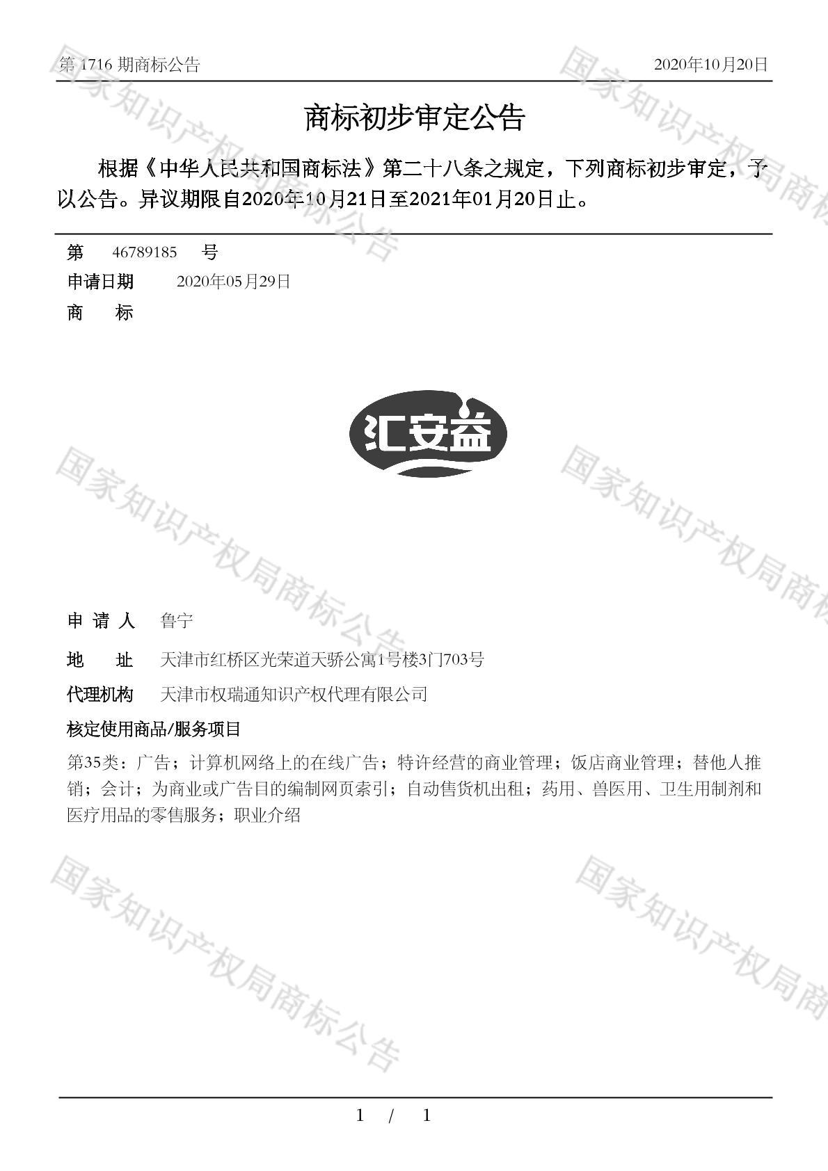 有效期限:2031-01-20 组合类型:中文注册号:46789185