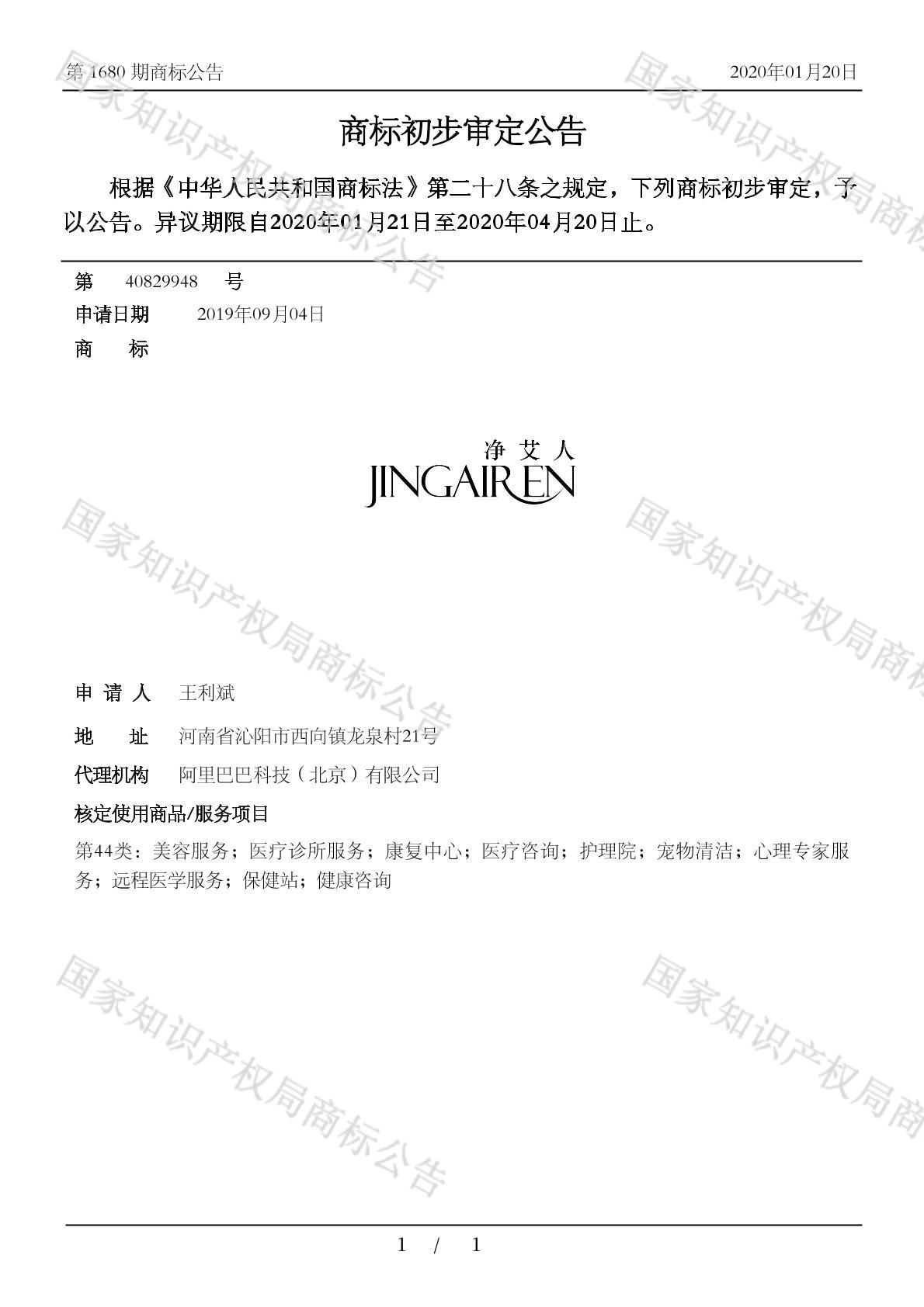 您当前位置:首页商标转让44类商标净艾人