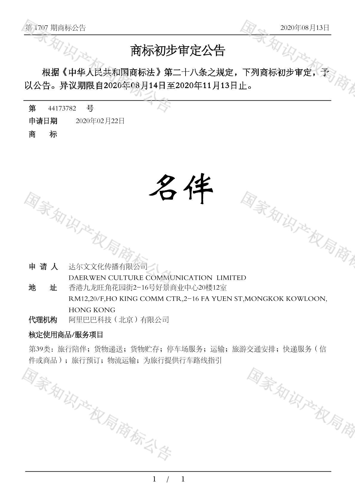 初审公告日期:2020-08-13