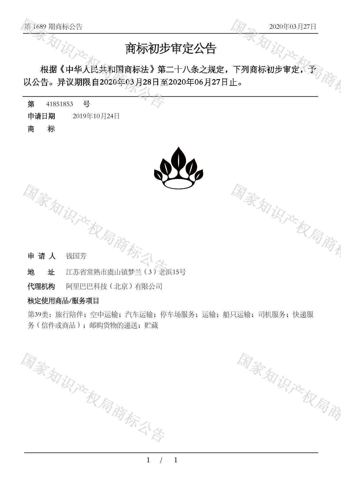 有效期限:2030-06-27 组合类型:中文注册号:41851853
