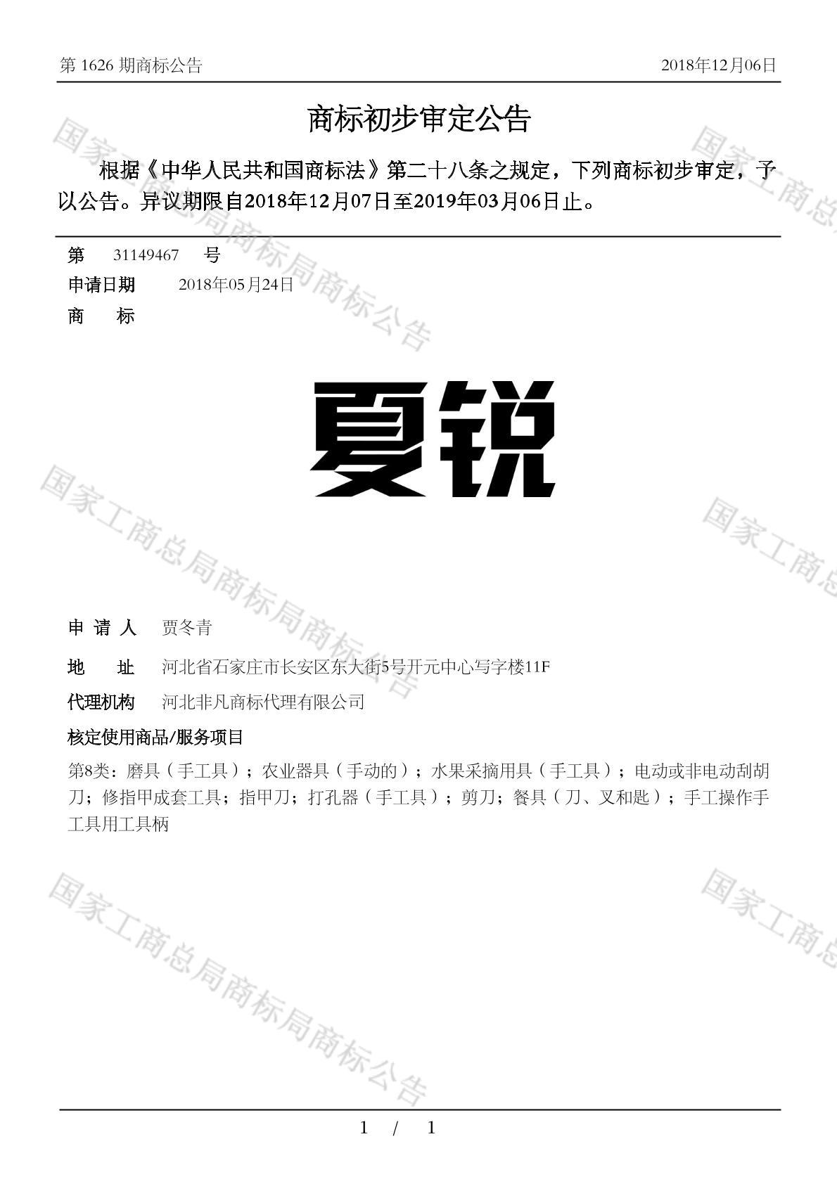 有效期限:2029-03-06 组合类型:中文注册号:31149467