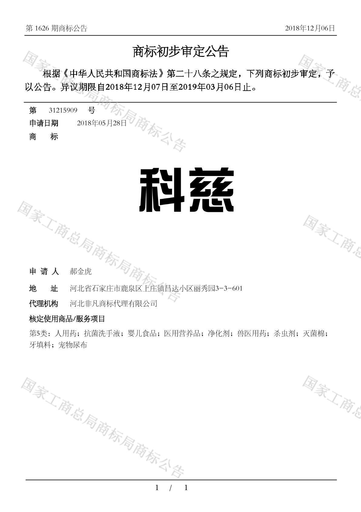 有效期限:2029-03-06 组合类型:中文注册号:31215909