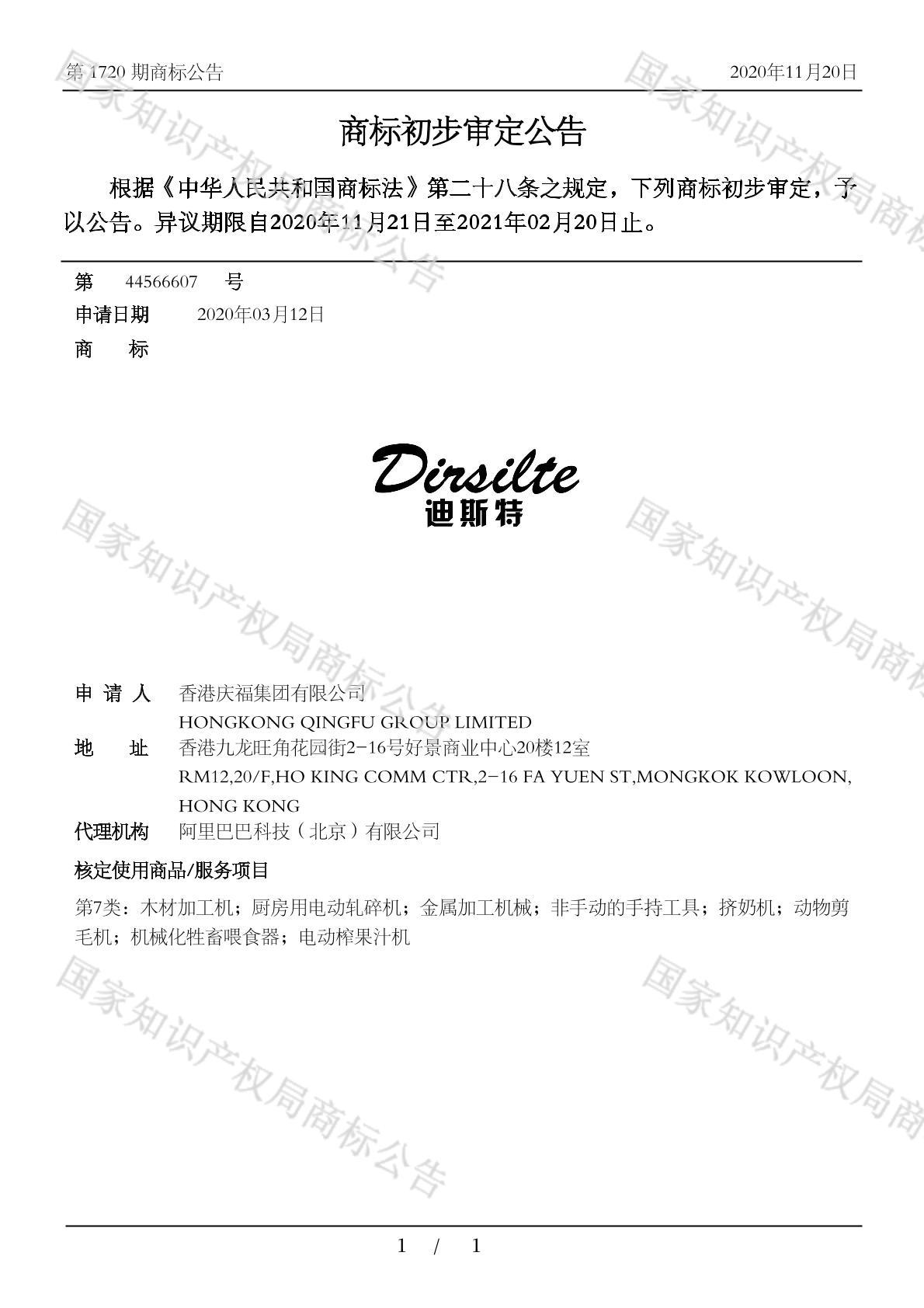 初审公告日期:2020-11-20