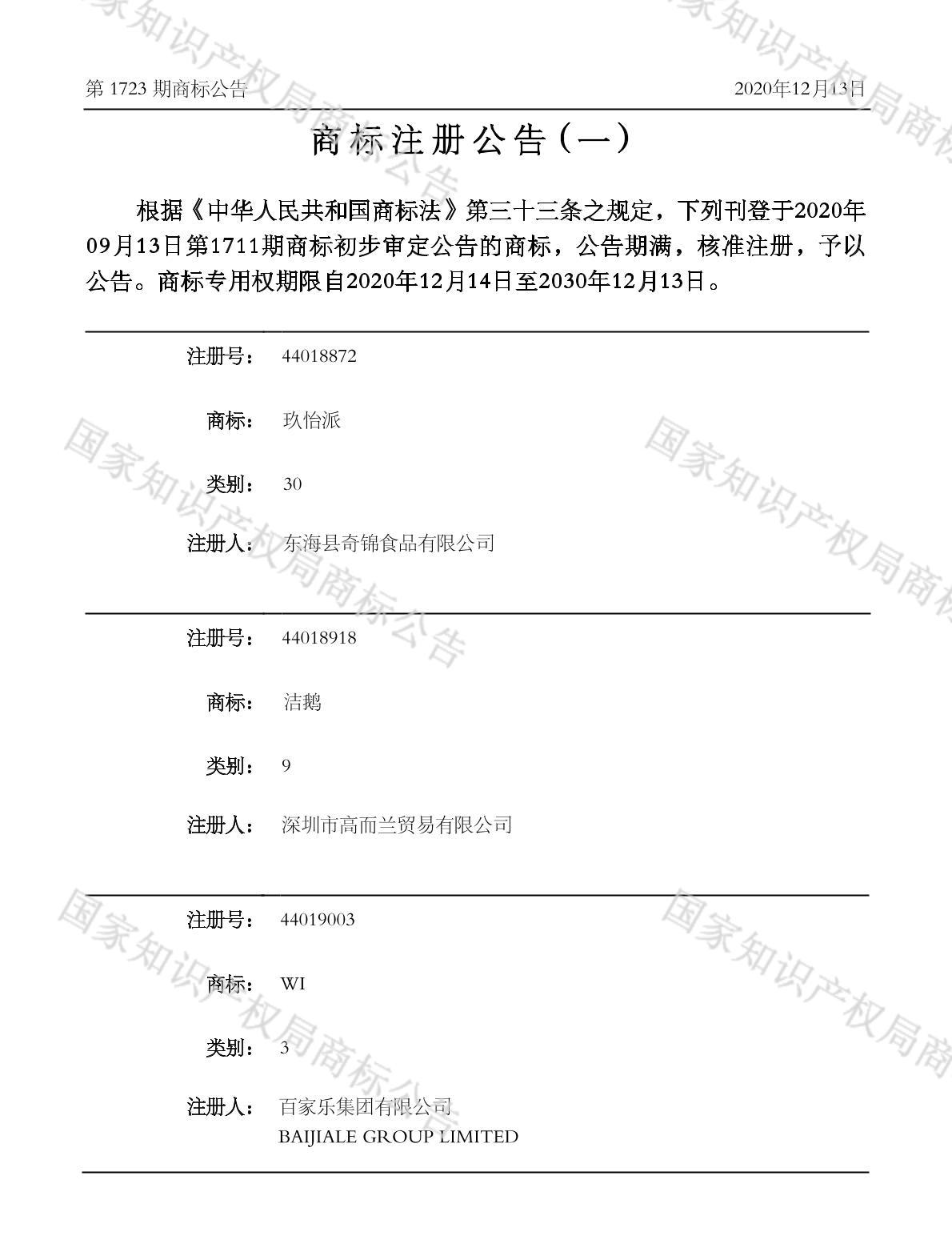 有效期限:2030-12-13 组合类型:中文注册号:44019003
