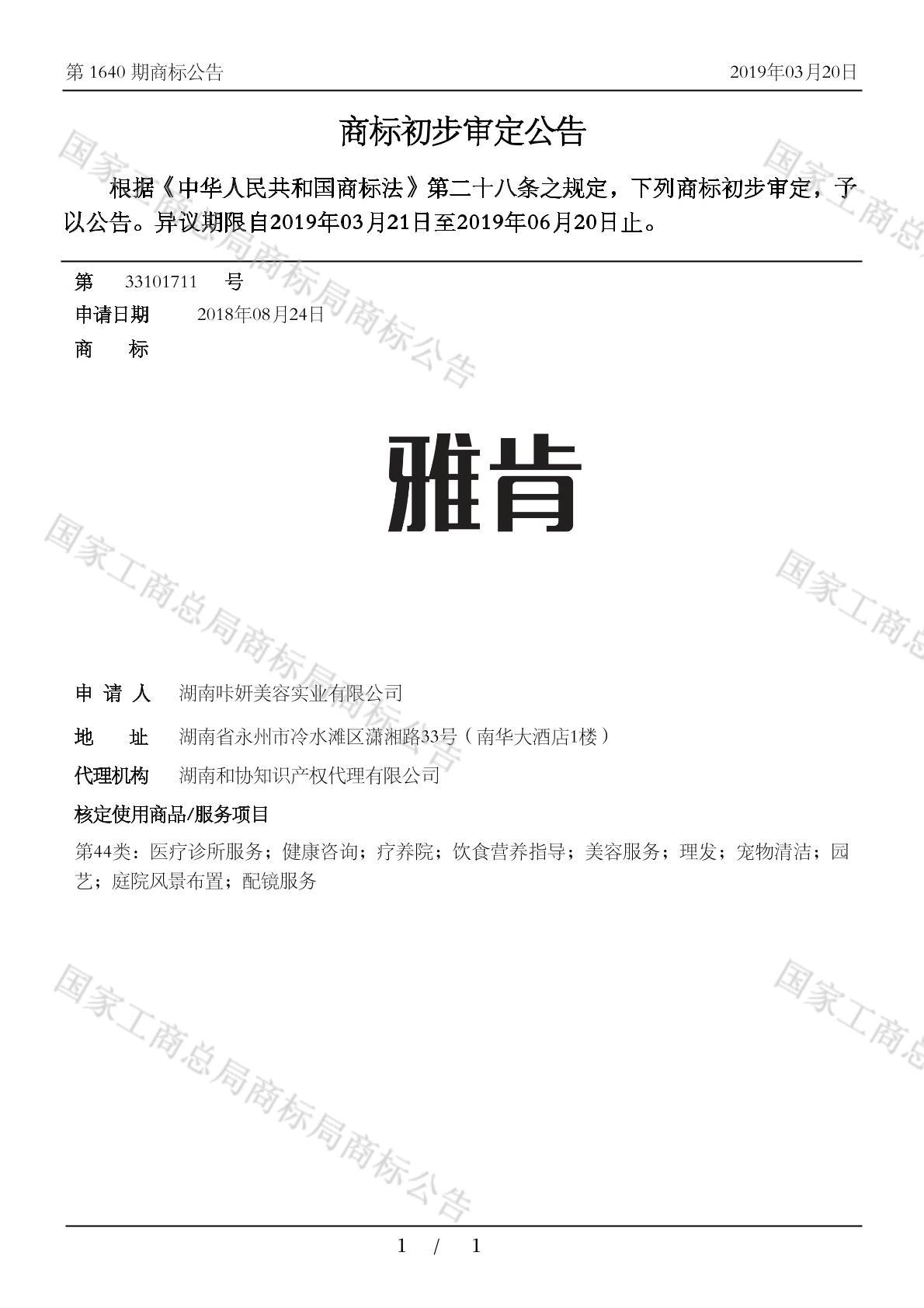 有效期限:2029-06-20 组合类型:中文注册号:33101711