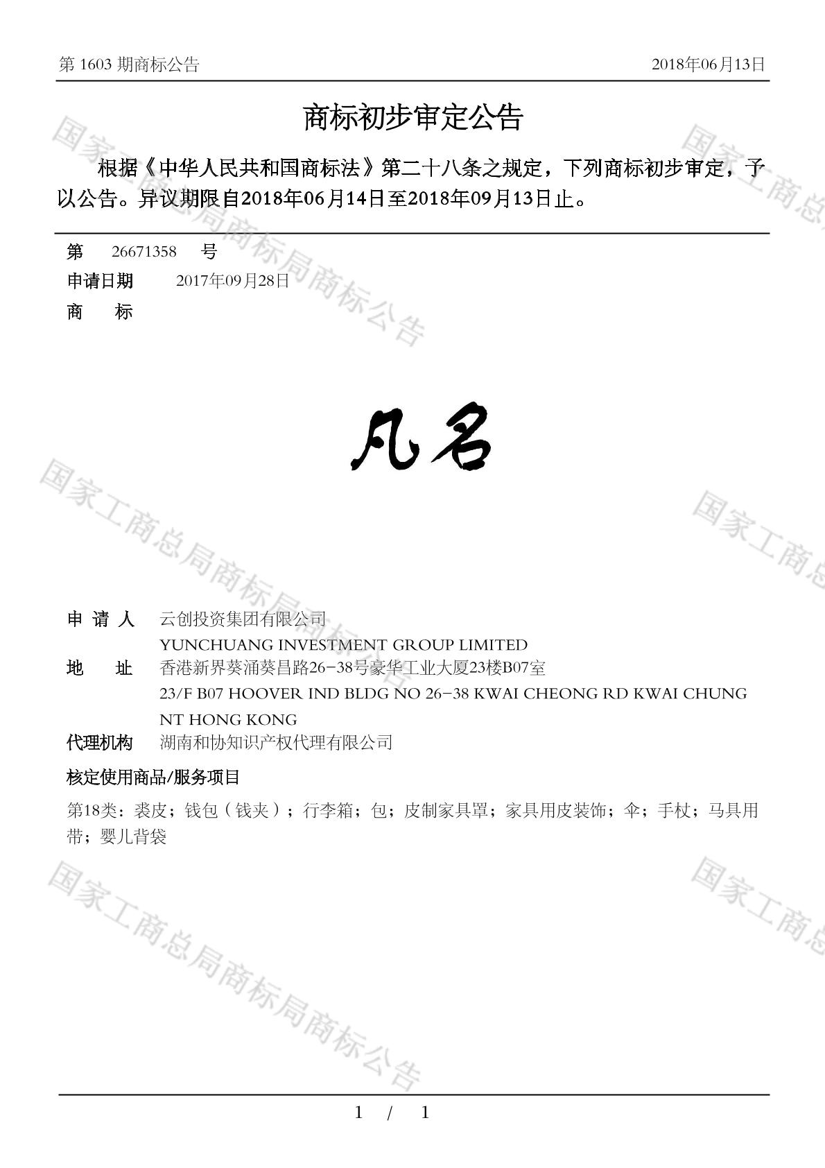 初审公告日期:2018-06-13