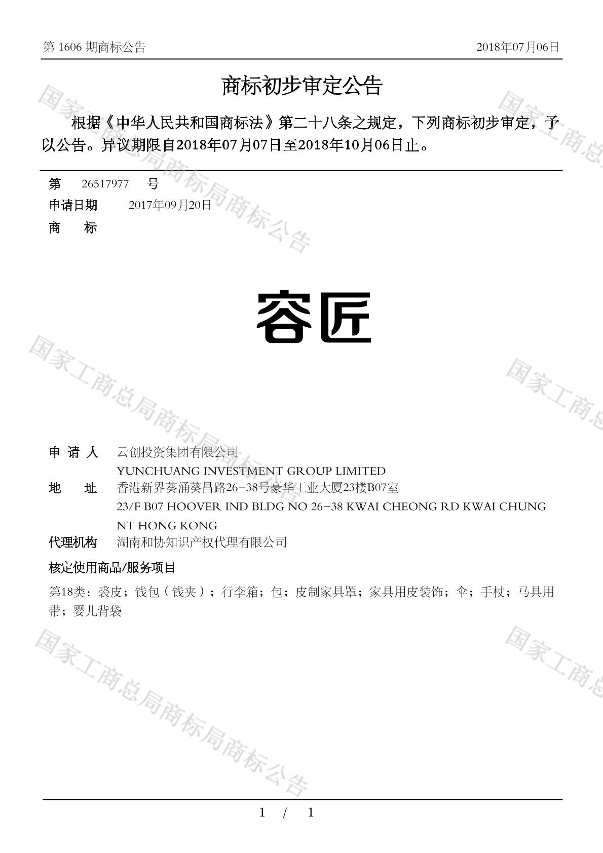您当前位置:首页商标转让18类商标容匠