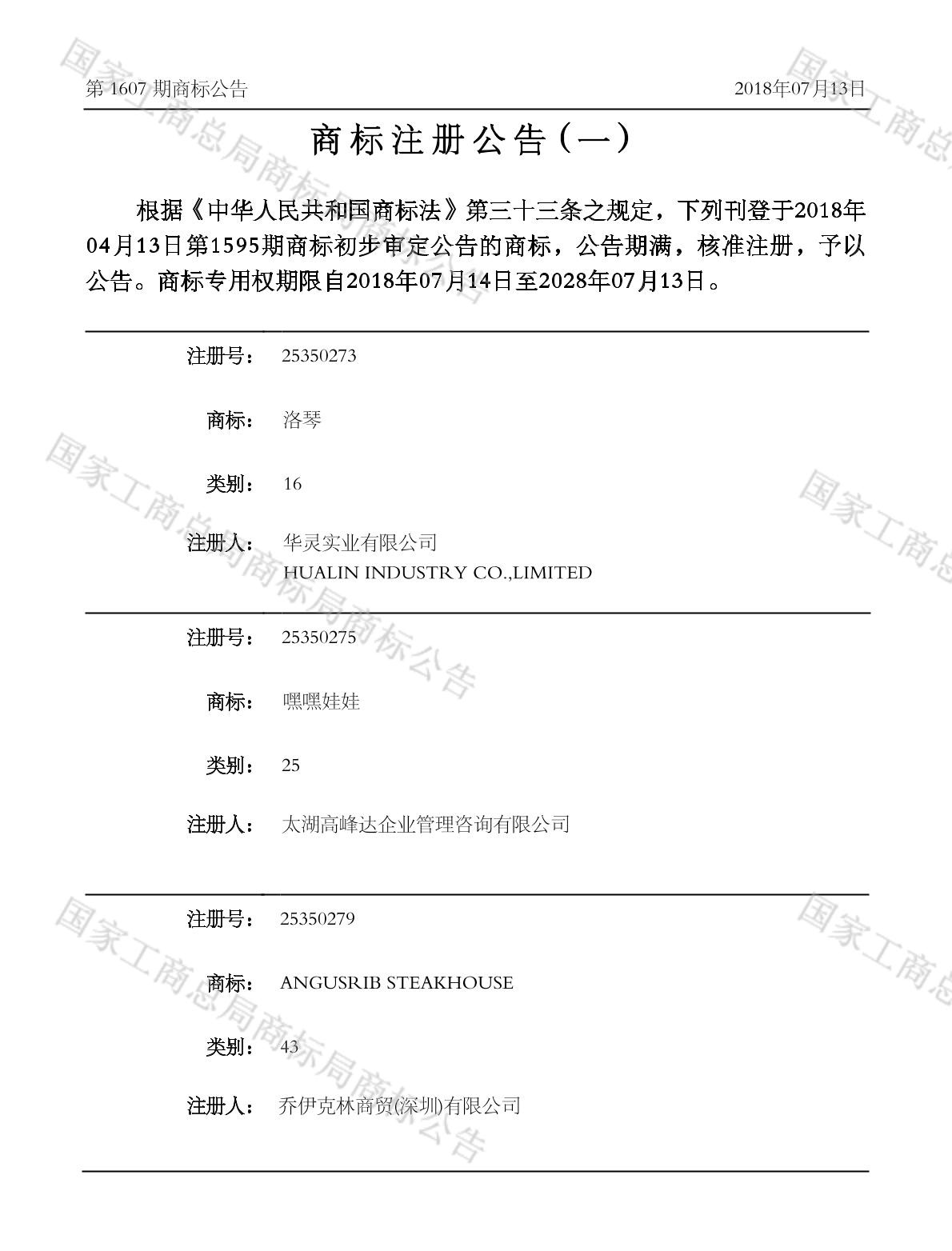 注册公告期号:1607