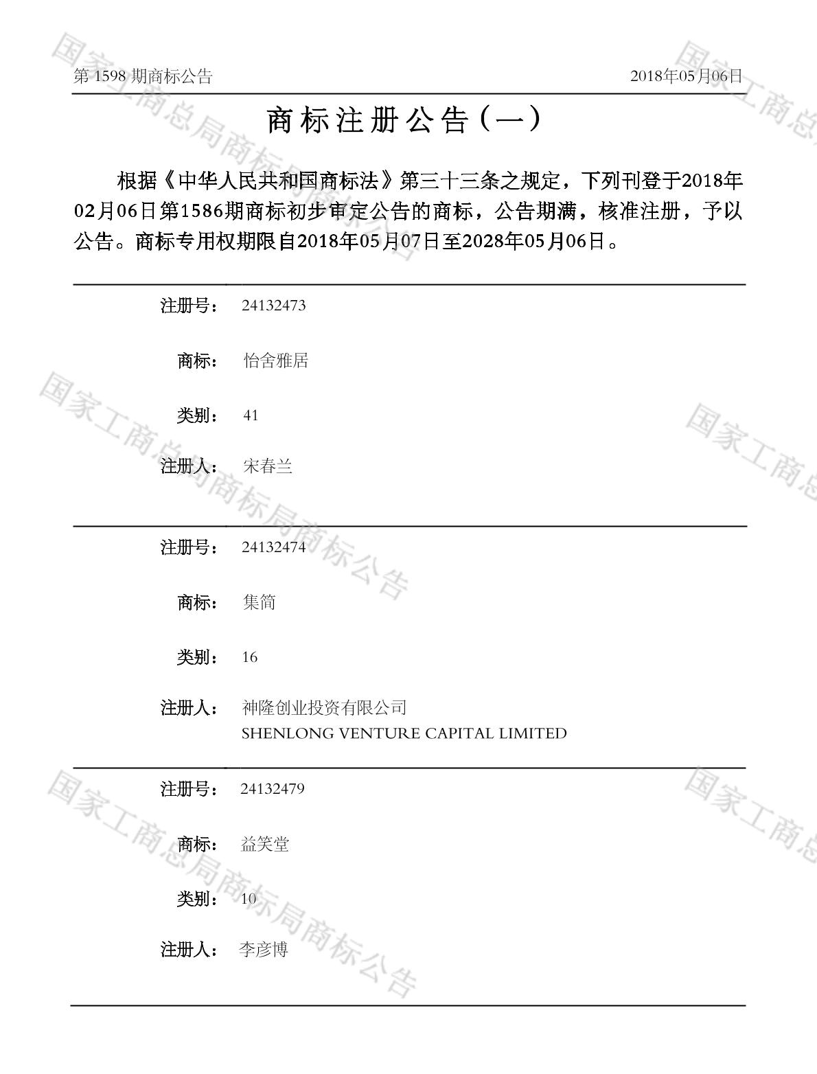 有效期限:2028-05-06 组合类型:中文注册号:24132474