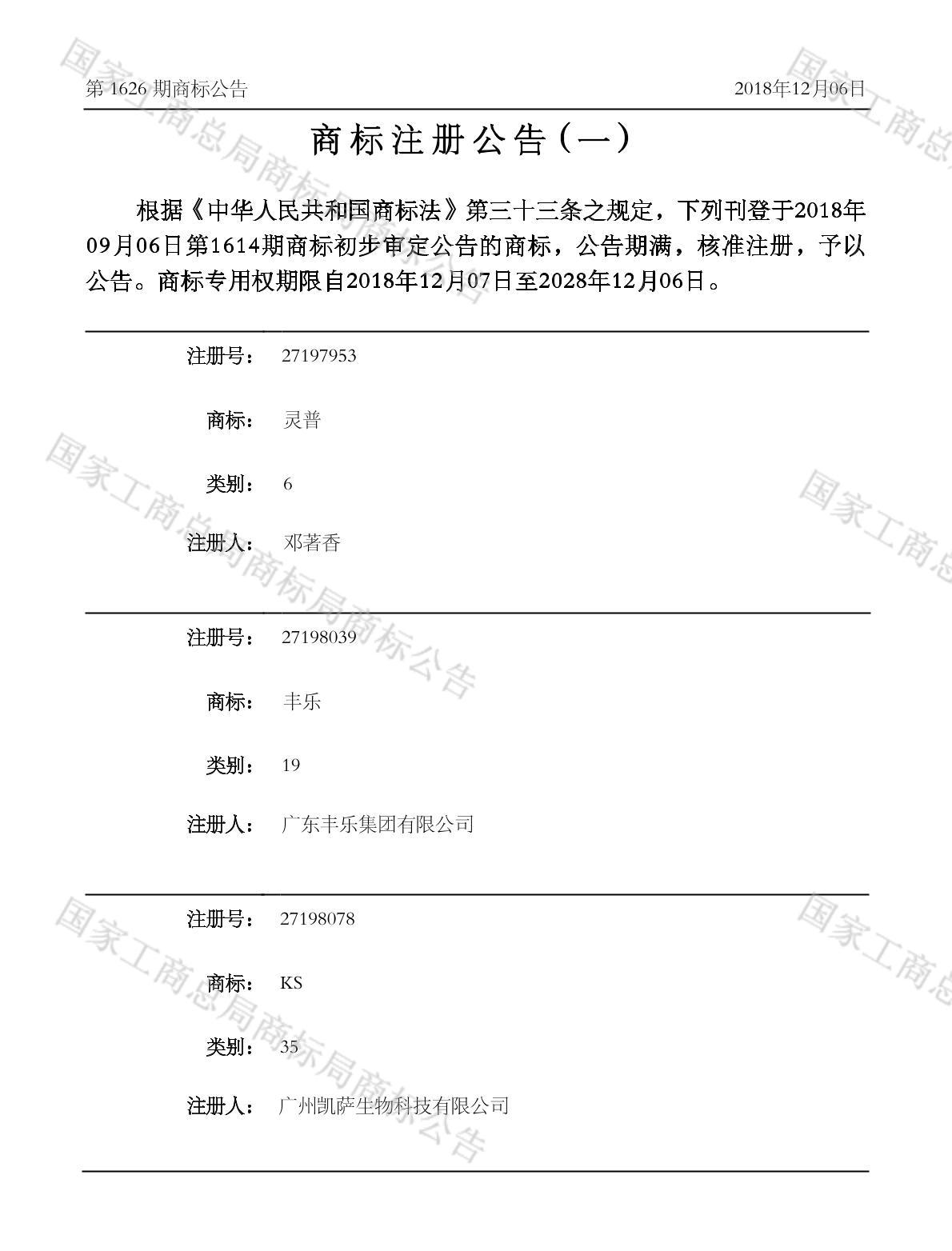 注册公告期号:1626