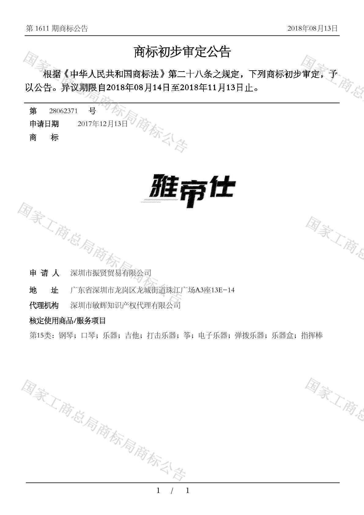 您当前位置:首页商标转让15类商标雅帝仕