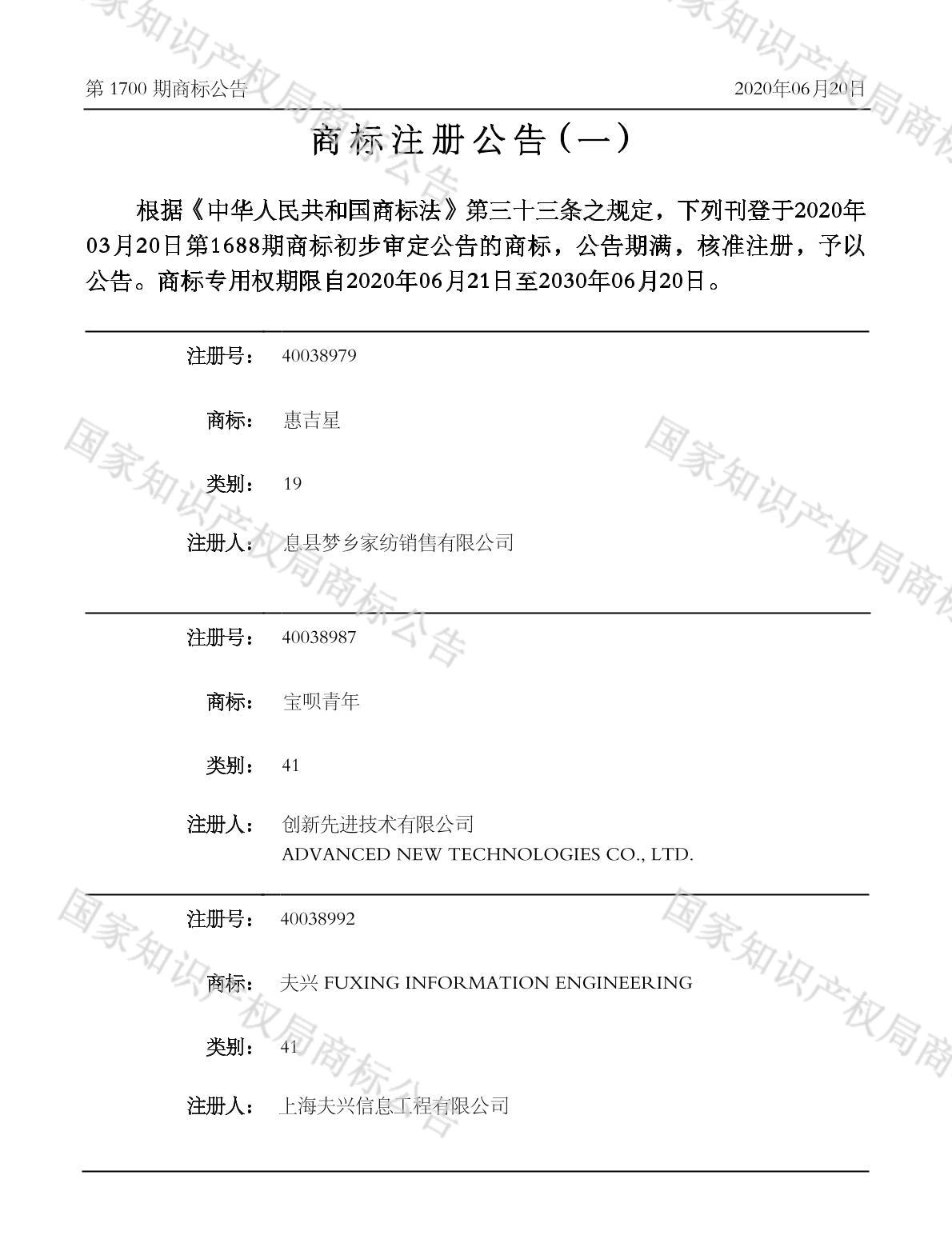 注册公告期号:1700