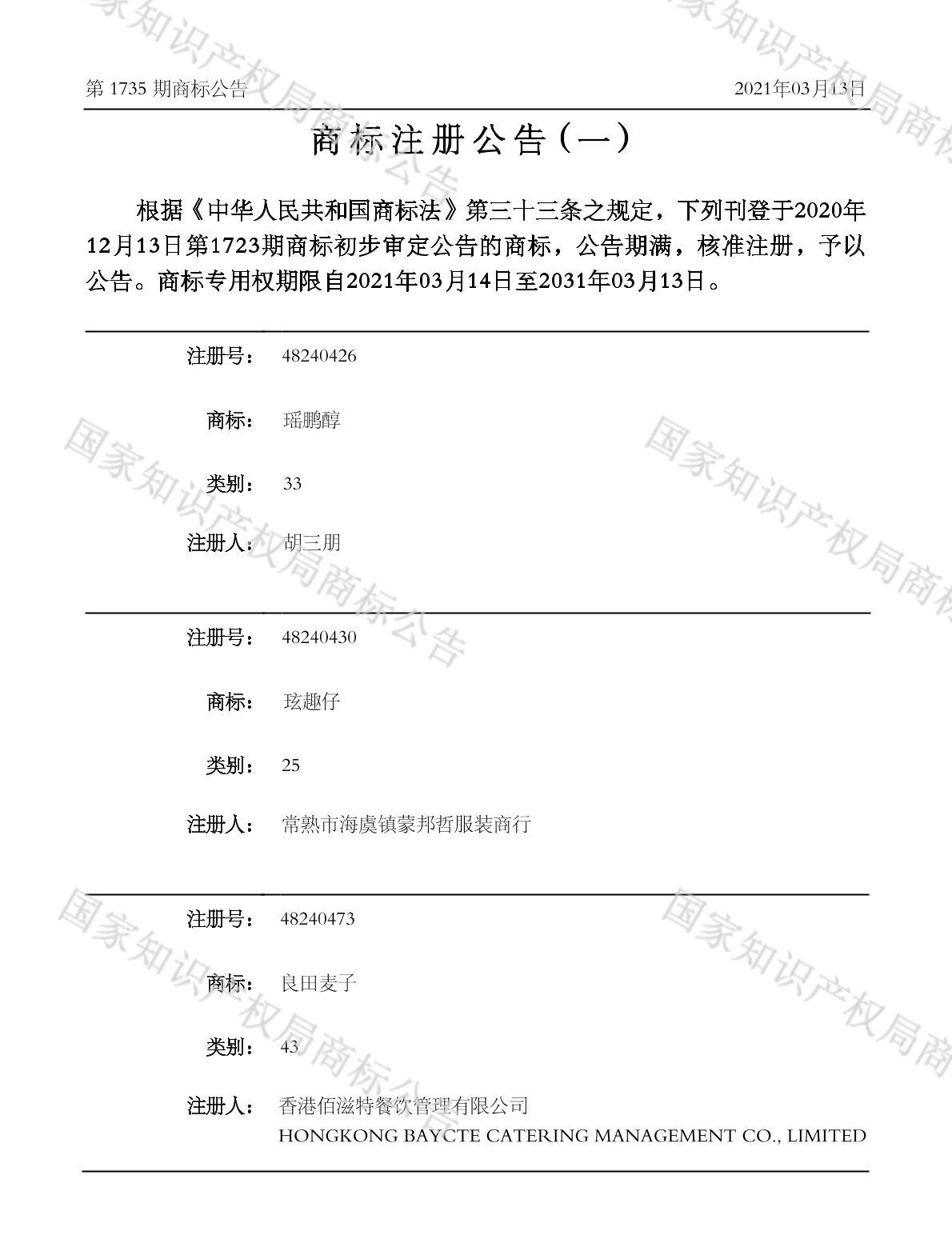 注册公告期号:1735