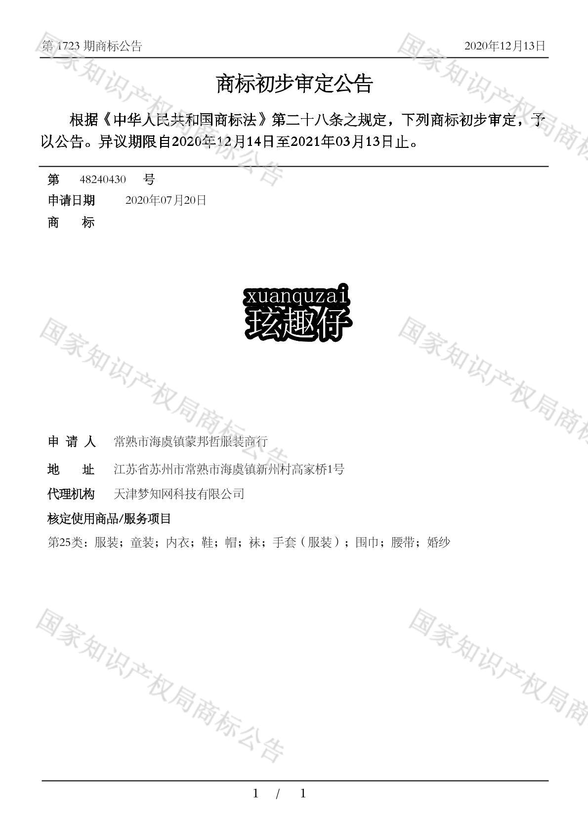 有效期限:2031-03-13 组合类型:中文注册号:48240430