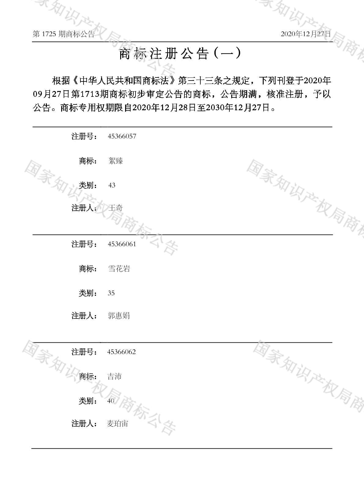 有效期限:2030-12-27 组合类型:中文注册号:45366057