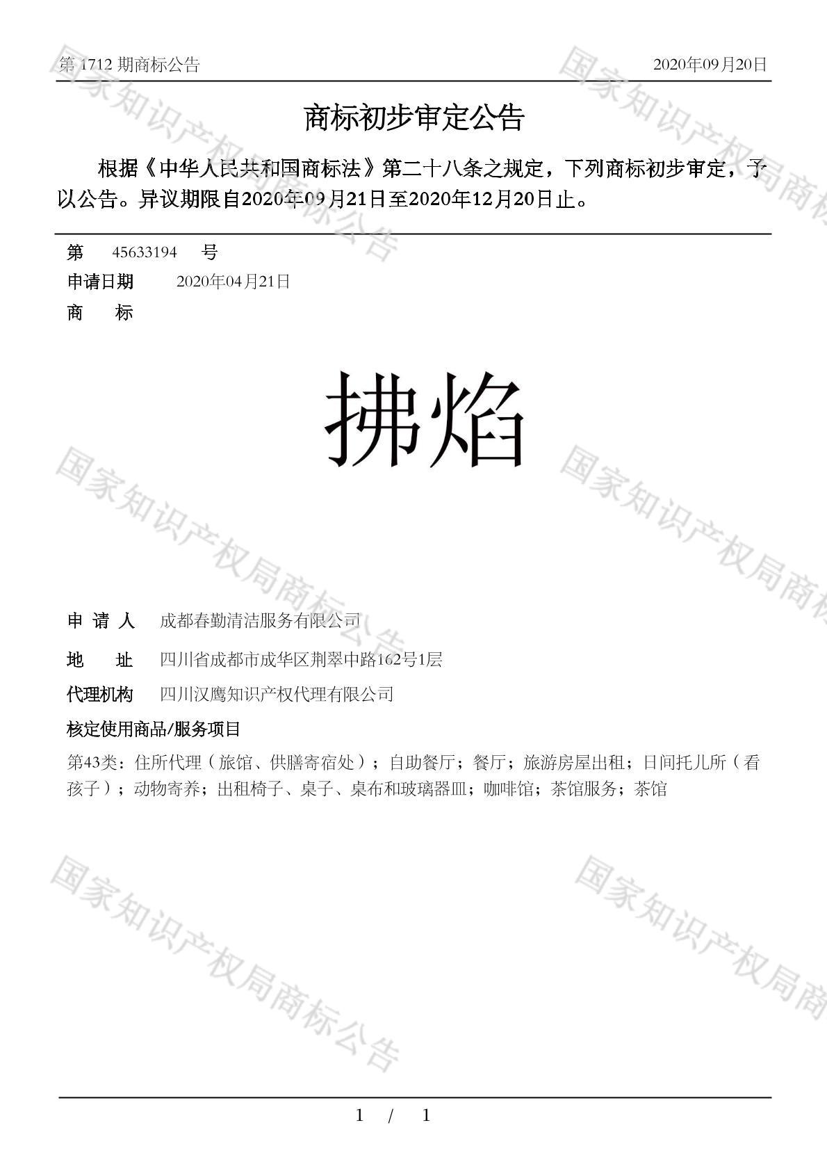 有效期限:2030-12-20 组合类型:中文注册号:45633194