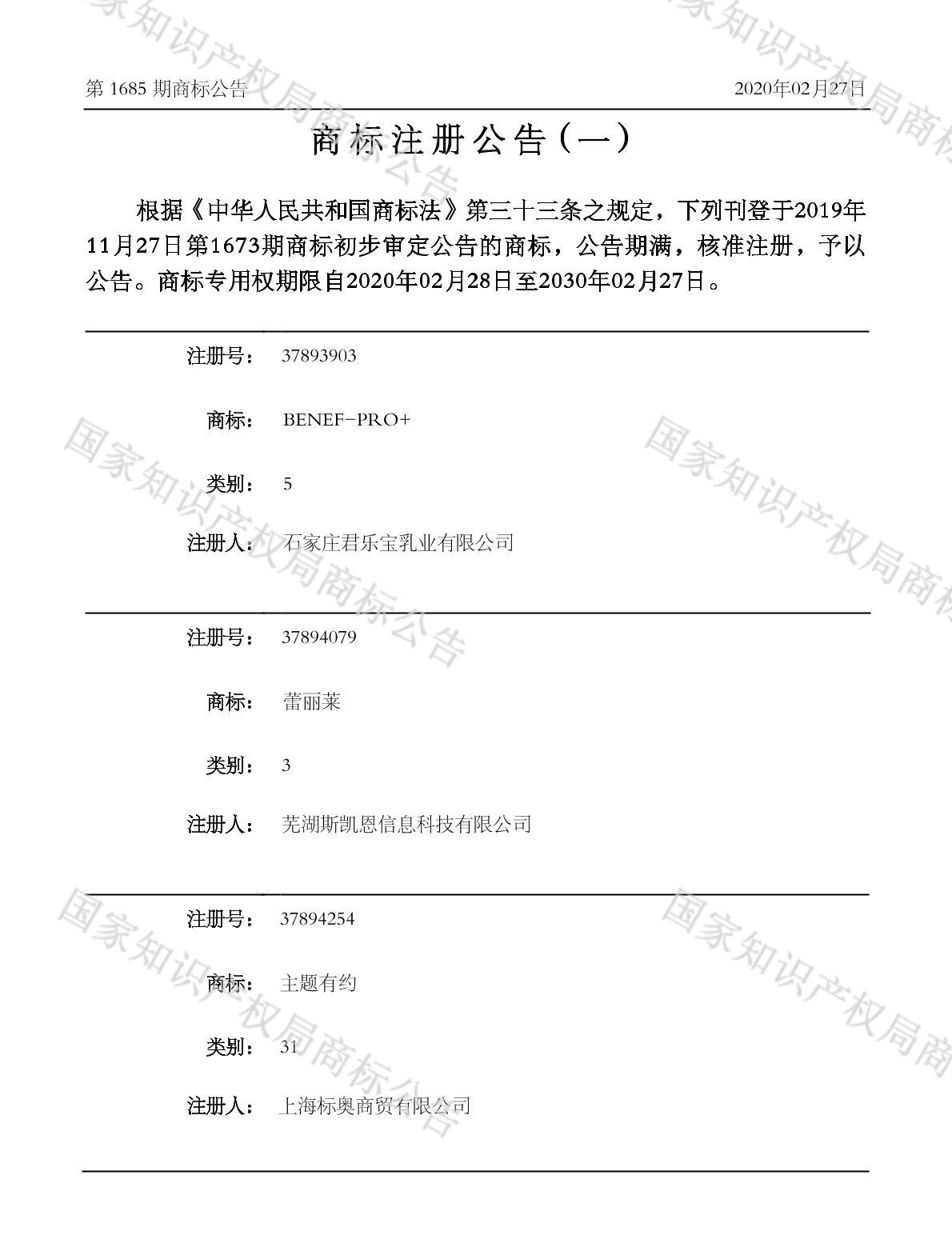 有效期限:2030-02-27 组合类型:中文注册号:37894254