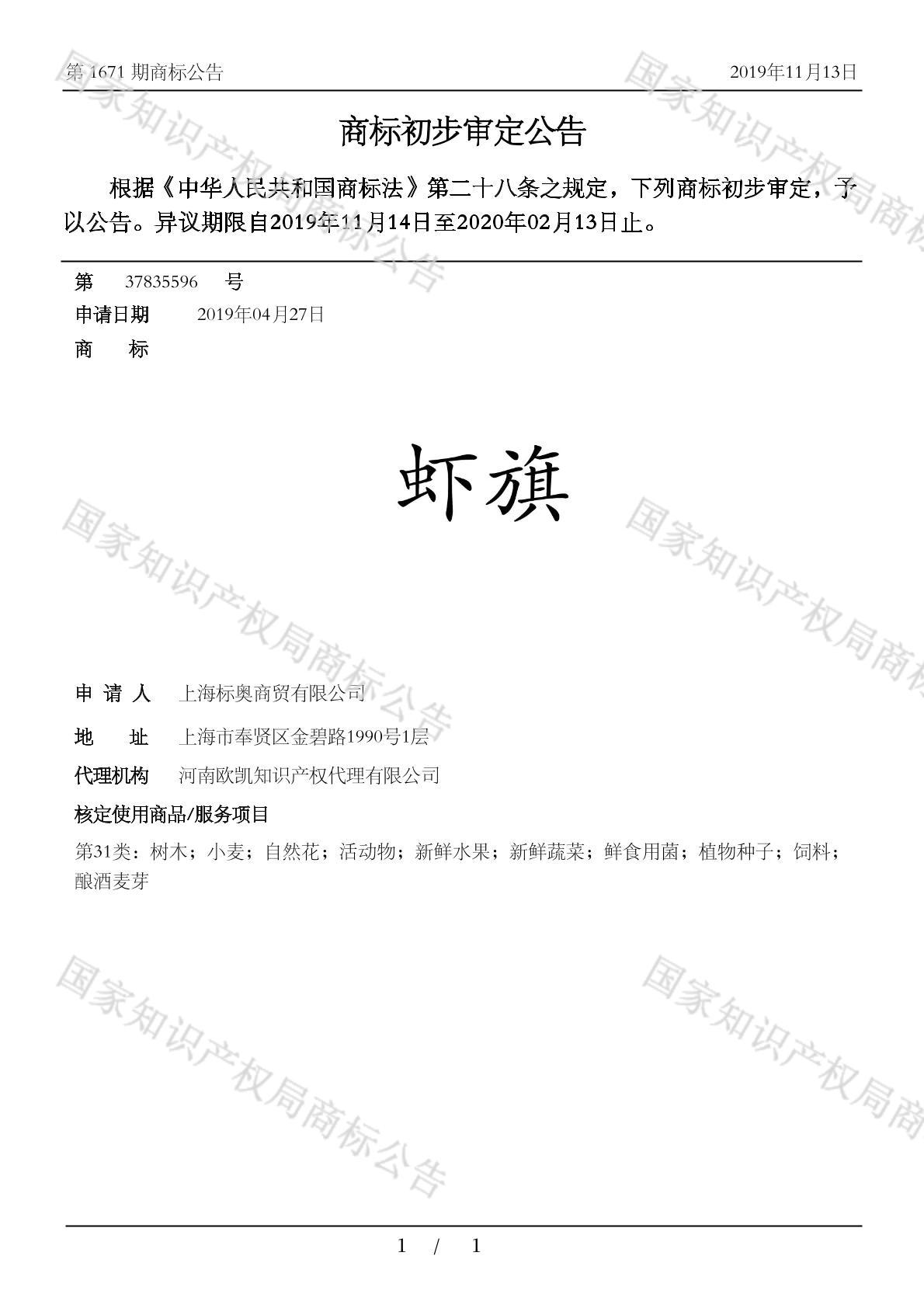 您当前位置:首页商标转让31类商标虾旗