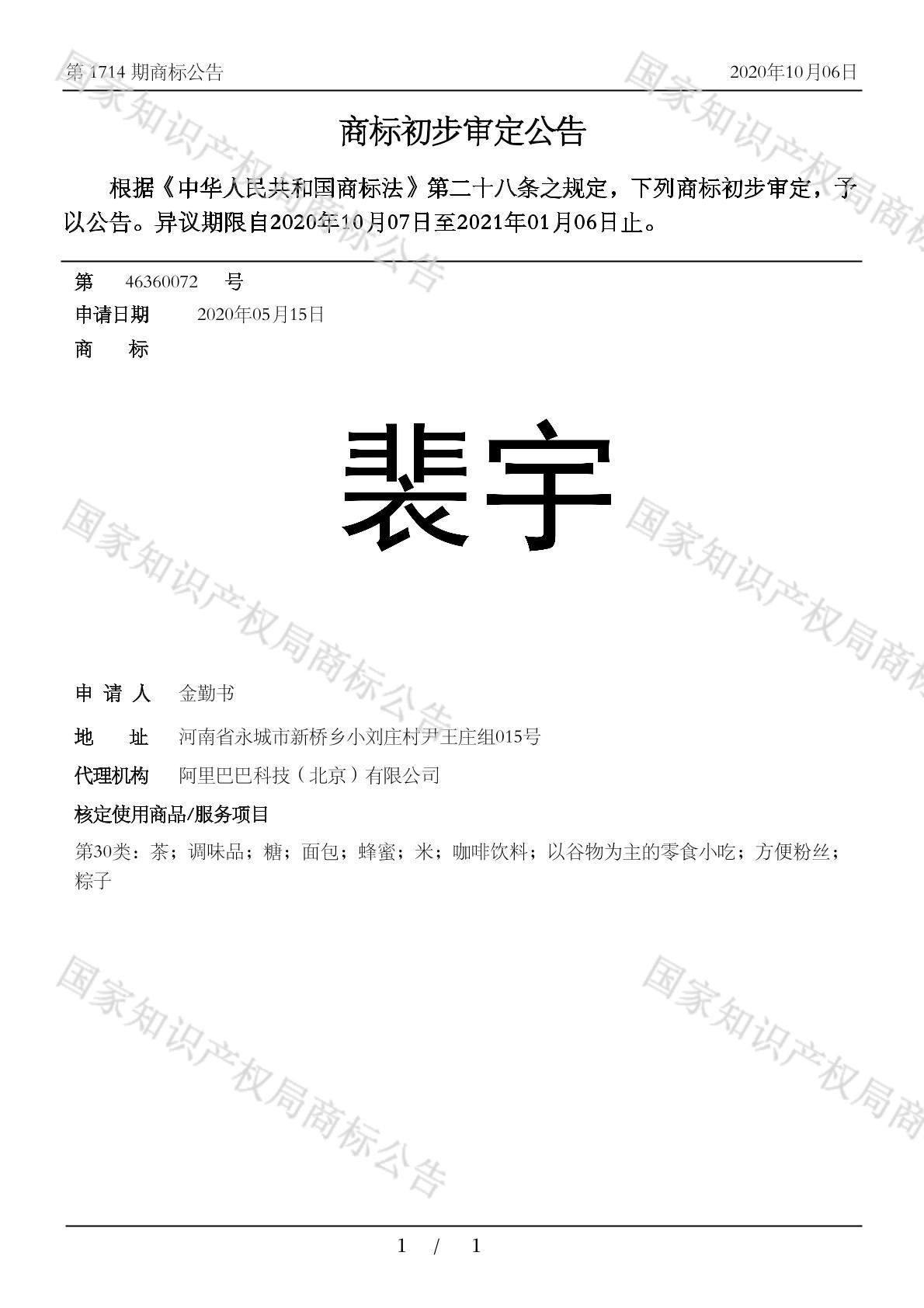 有效期限:2031-01-06 组合类型:中文注册号:46360072