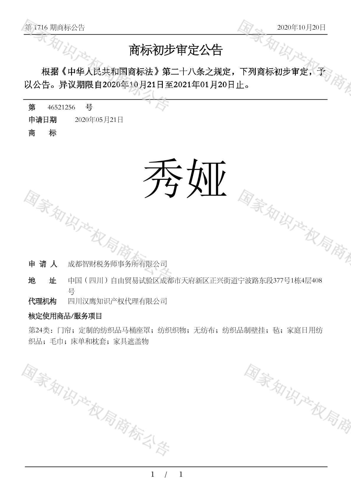 有效期限:2031-01-20 组合类型:中文注册号:46521256