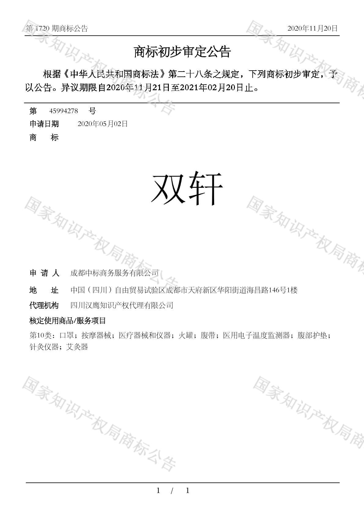 有效期限:2031-02-20 组合类型:中文注册号:45994278