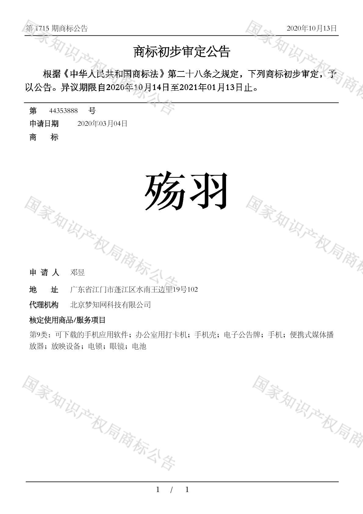 有效期限:2031-01-13 组合类型:中文注册号:44353888
