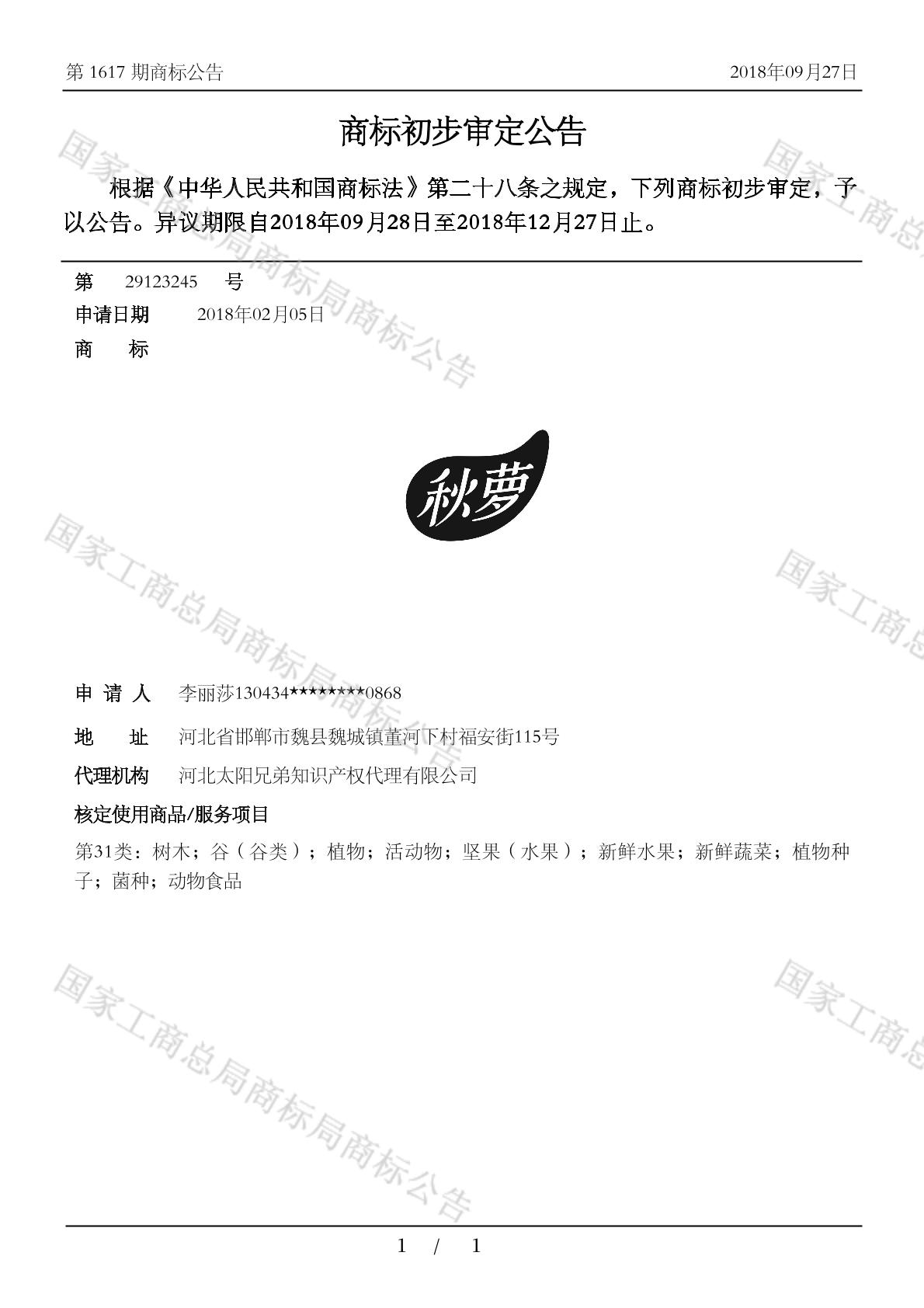 有效期限:2028-12-27 组合类型:中文注册号:29123245