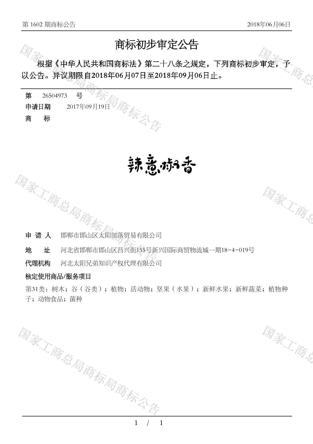 有效期限:2028-09-06 组合类型:中文注册号:26504973