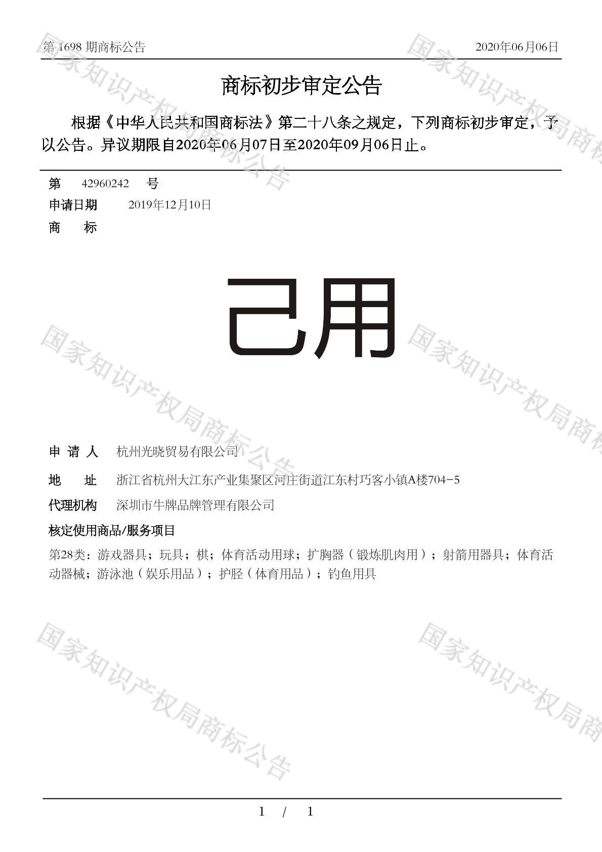 有效期限:2030-09-06 组合类型:中文注册号:42960242