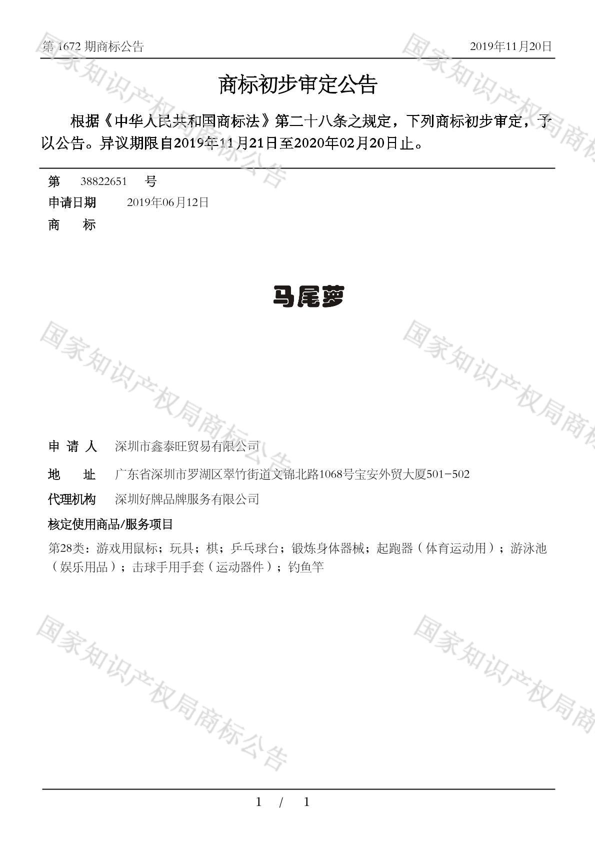 有效期限:2030-02-20 组合类型:中文注册号:38822651