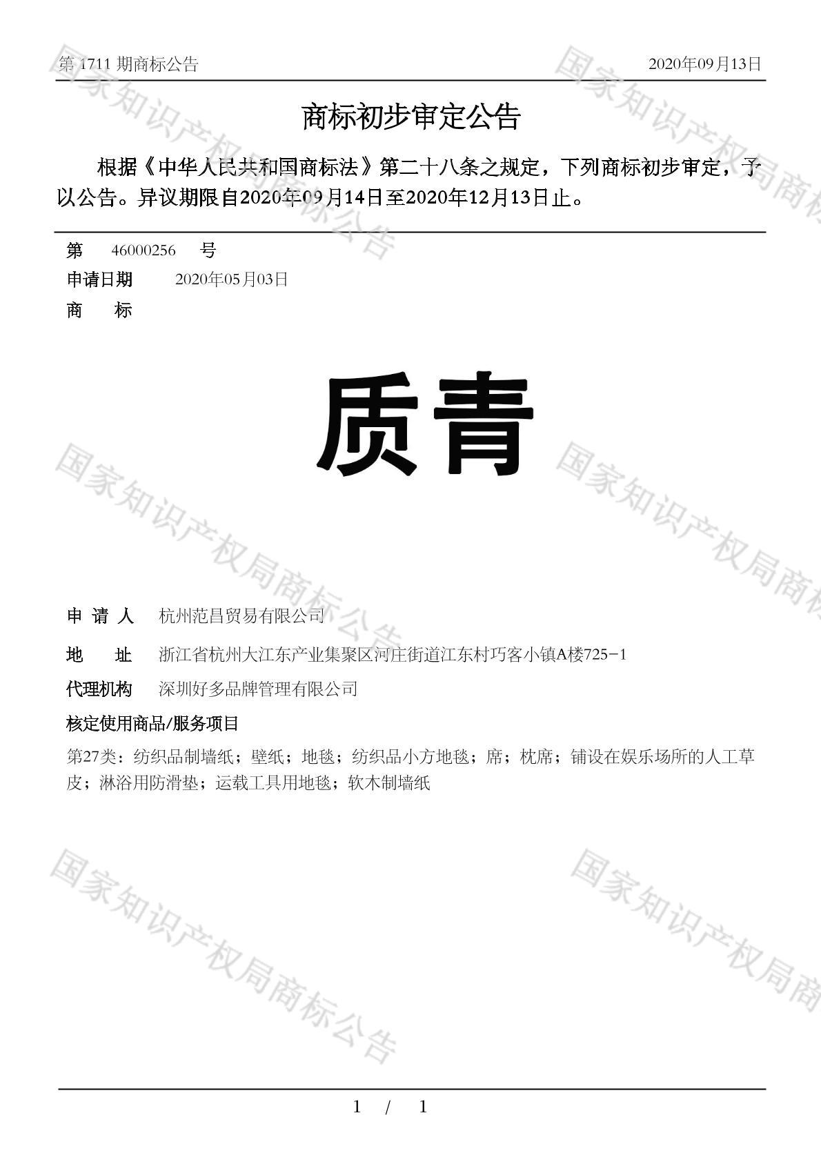 有效期限:2030-12-13 组合类型:中文注册号:46000256