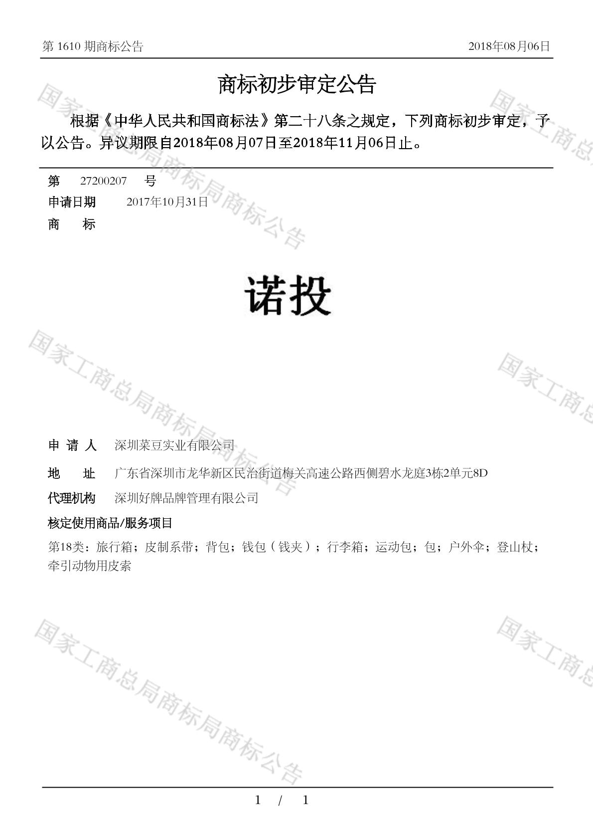 您当前位置:首页商标转让18类商标诺投