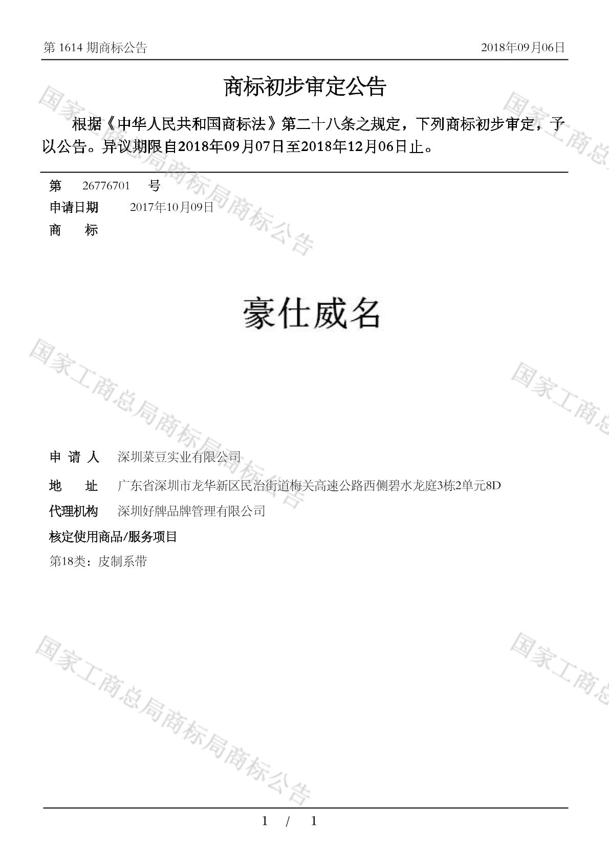 有效期限:2028-12-06 组合类型:中文注册号:26776701